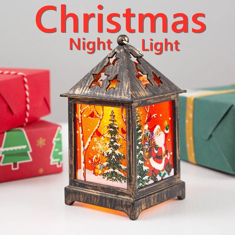 Новый Рождественский Декор, креативный ночник с Санта-Клаусом, снеговиком, ветровой фонарь в стиле ретро, Рождественское украшение, светильник