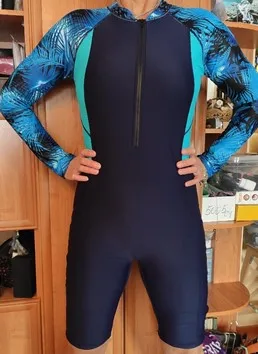 Купальник отличный! Сшит очень хорошо, швы ровные, нитки не торчат, ткань приятная. Подходит на высокий рост, у меня 182 см, даже рукава чуть длинноваты! Размер XXL подошёл на росс. 50-52, даже слегка свободно сел. Молния коротковата, в мокром виде снимать немного проблематично. Но это ничто в сравнении с тем, как сидит и смотрится! Супер! Берите!