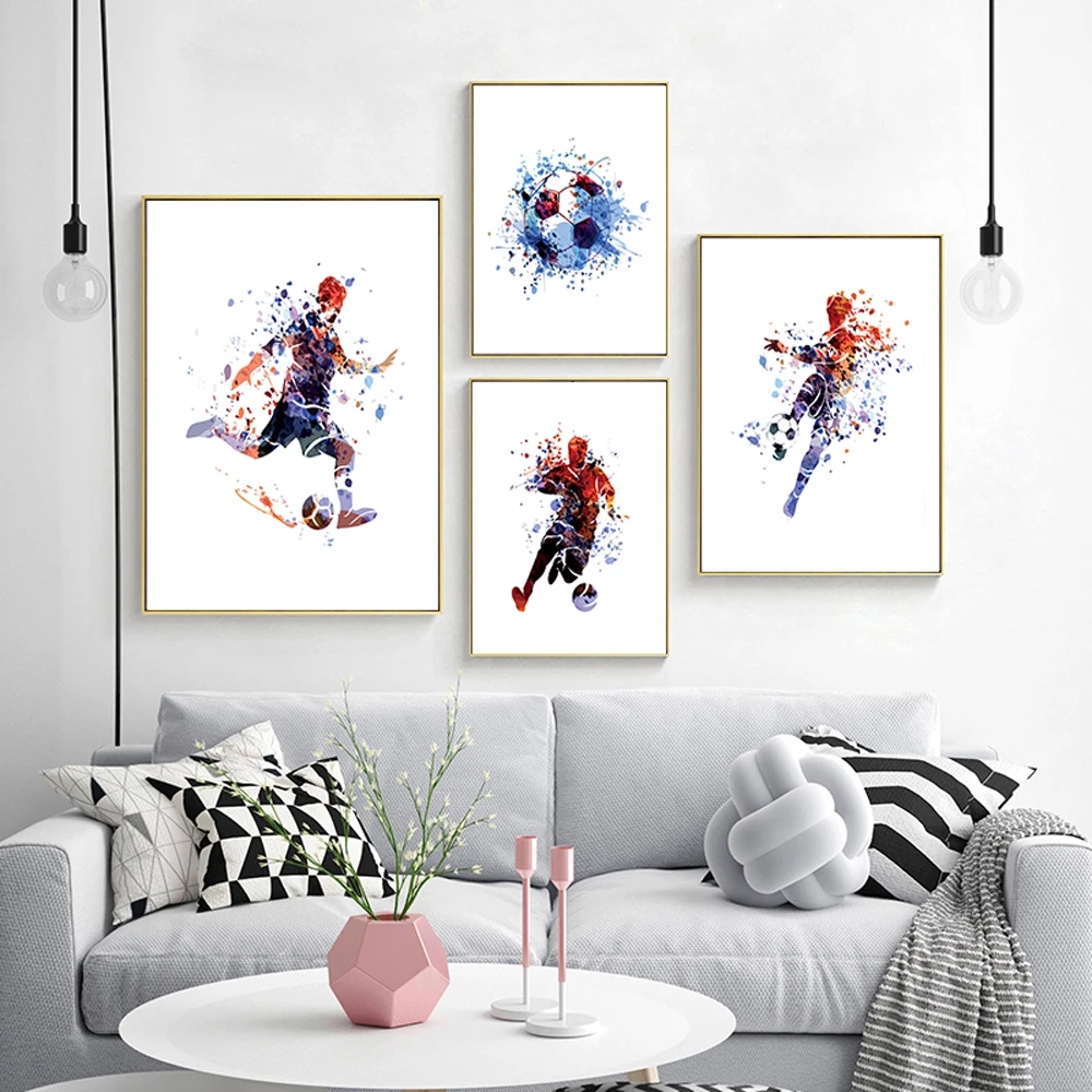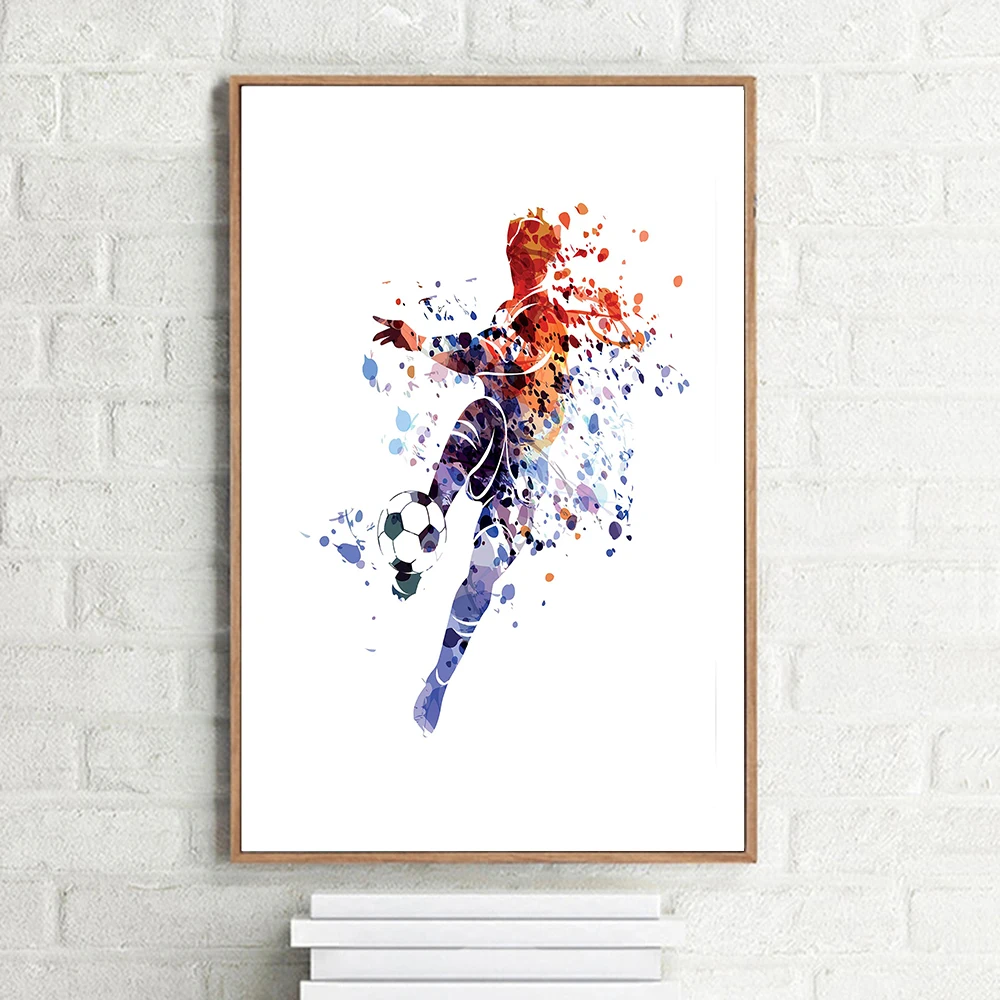 Футбол плеер настенные картины печать на холсте воды цвет Спорт постеры настенные картины для детской комнаты стены искусства декора куадроса