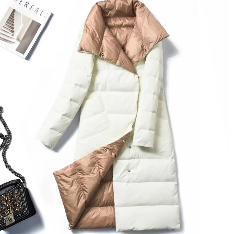 Двусторонняя куртка-пуховик длиной до колена, Женское зимнее ульсветильник кое пальто с подкладкой из утиного пуха для женщин, модные парки 2 в 1, женская мода