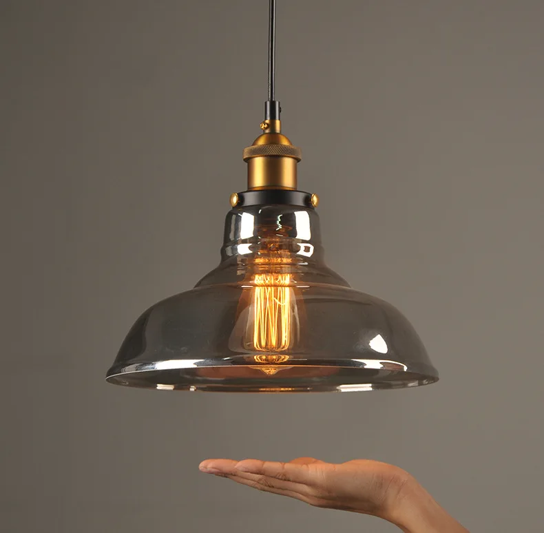 Ретро подвесной светильник, стеклянный подвесной светильник, промышленный подвесной светильник из дымчатого стекла для барной стойки, кухни, столовой, ресторана