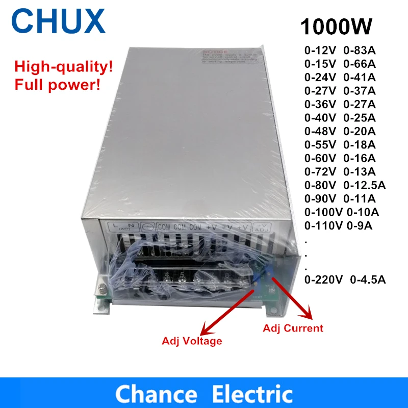 1000 Вт преобразователь источника питания постоянного тока 220 В в 12 В 15 в 24 в 36 в 48 в 55 в 60 в 72 в 80 в 90 в 100 в 110 В Регулируемое напряжение 1000 Вт переменный ток в постоянный ток