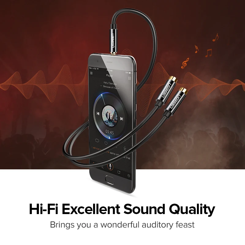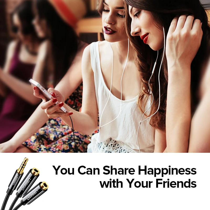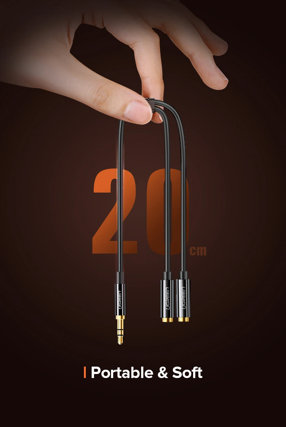 Аудиоразъем UGREEN 3,5 мм, разветвитель, удлинитель AUX, переходник для наушников 3,5 мм штекер на 2 порта 3,5 гнездо для iPad, ПК, MP3-плееров