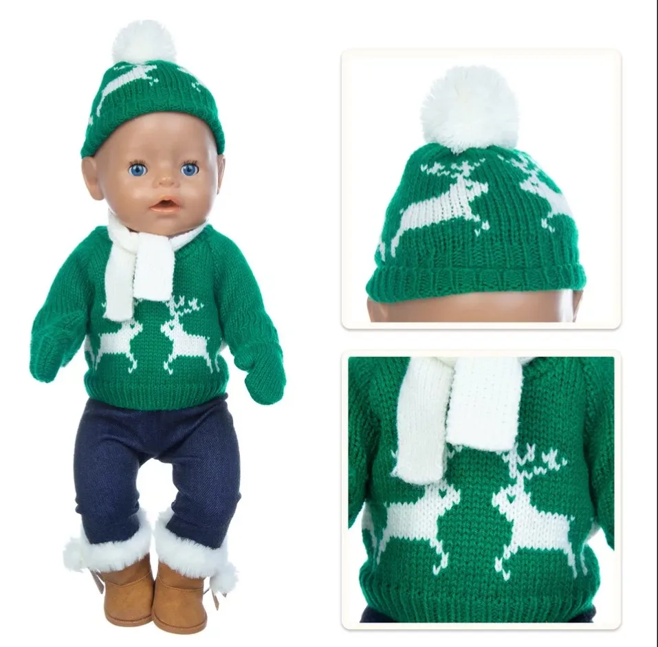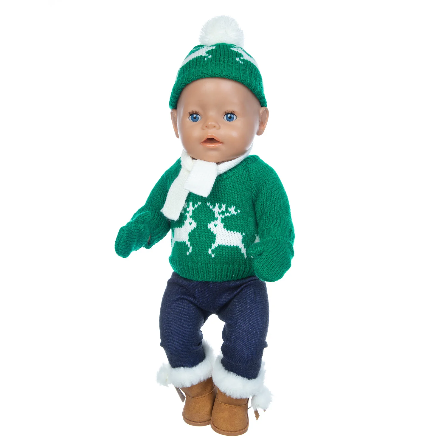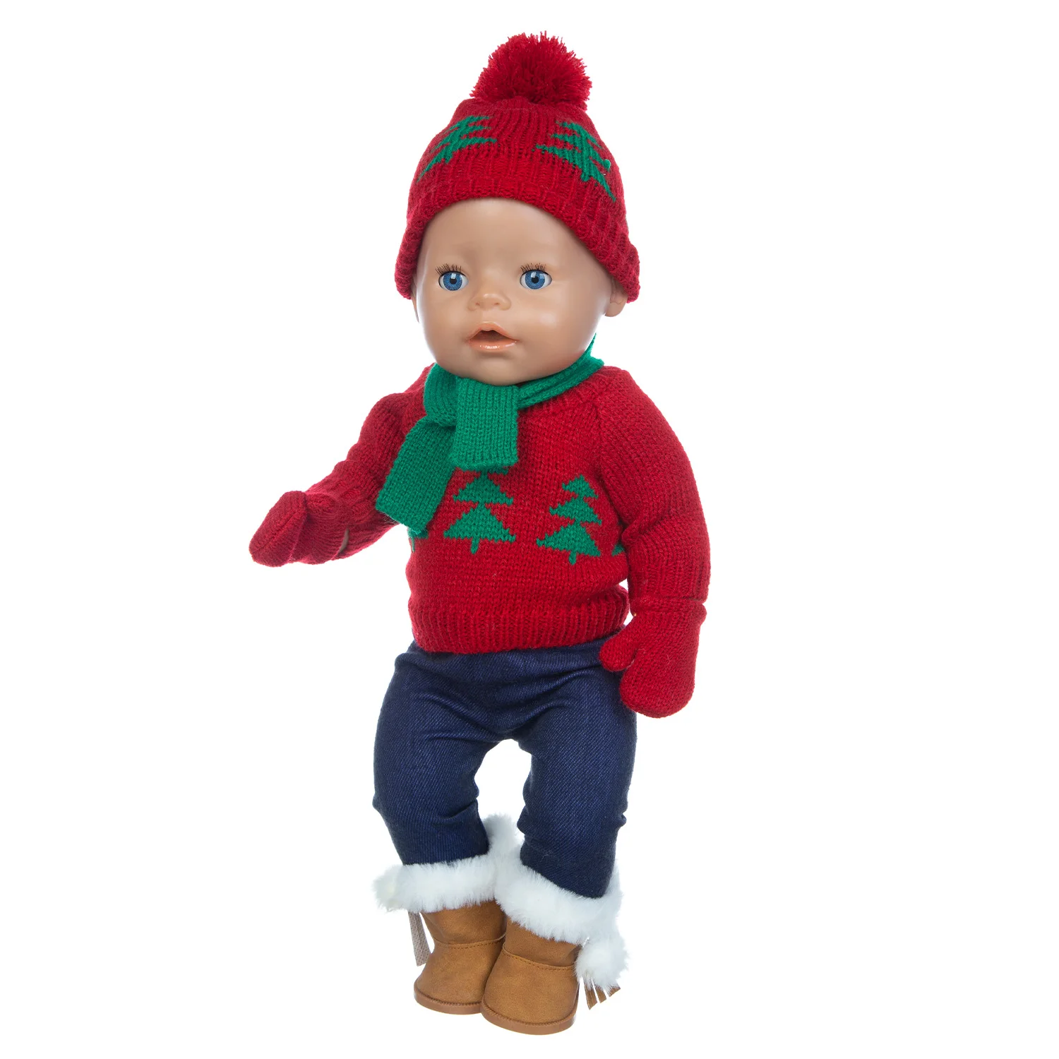 1 комплект, свитер, шапка, шарф и перчатки, подходит для кукол 17 дюймов 43 см, костюм для новорожденных, подарок на день рождения
