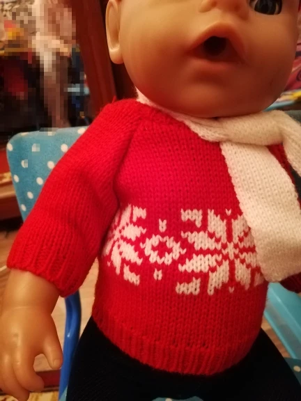 Костюм очень понравился! В наборе свитер, шапочка, варежки, шарфик и джинсы. Всё сделано очень аккуратно. Кукла очень преобразилась. Если раньше просто стояла на полке, то теперь лучшая подружка. Ребёнок с ней не расстаётся, везде с ней и в садик, и в гости, и на улицу. Оплатила заказ 29 января. Продавец отправил 2 февраля, а 24 февраля я уже получила заказ на почте.