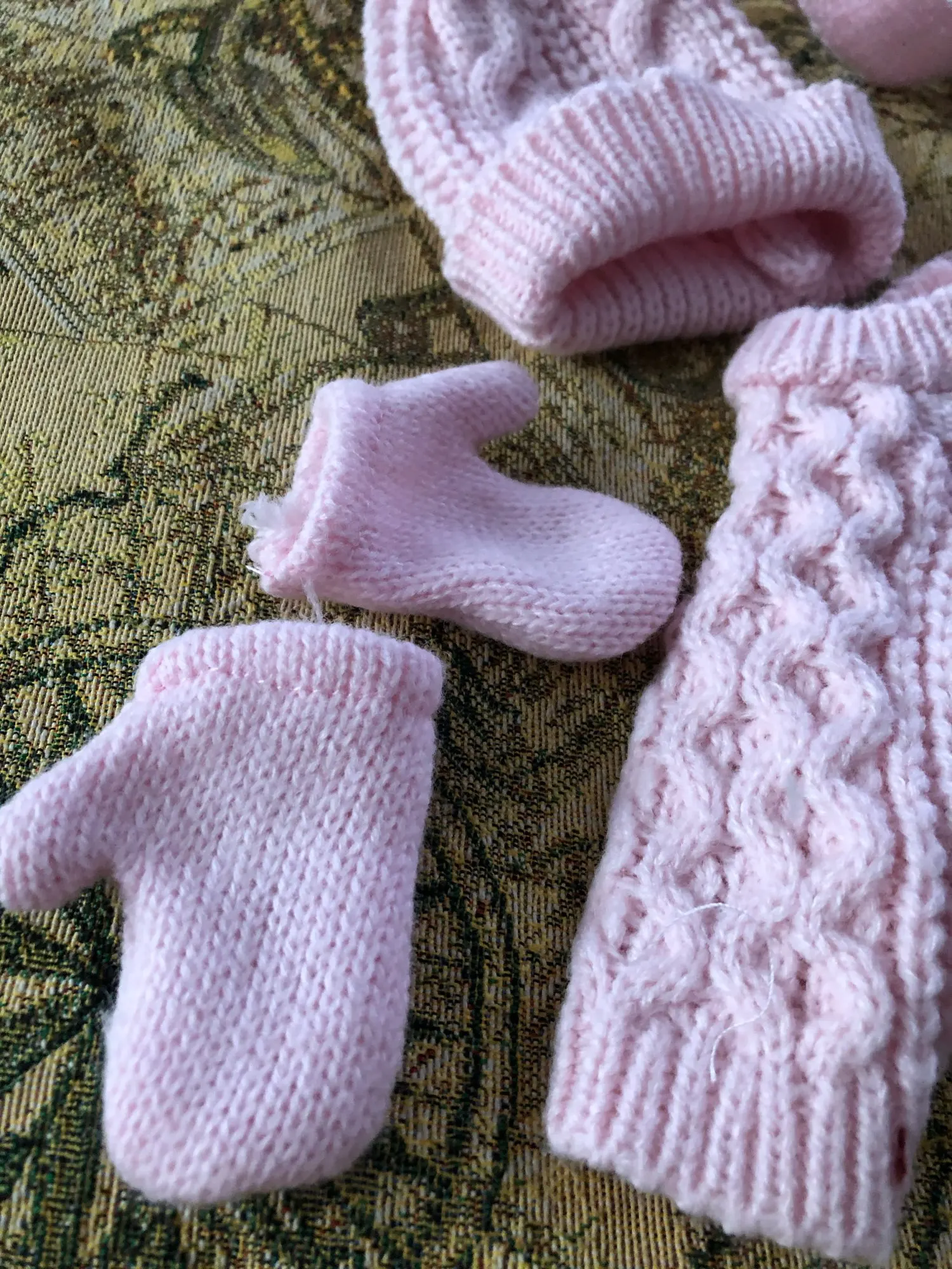 набор классный только шапочка не налезла на куклу фирмы Весна, но не критично на другую куклу подошка, очень порадовали варежки