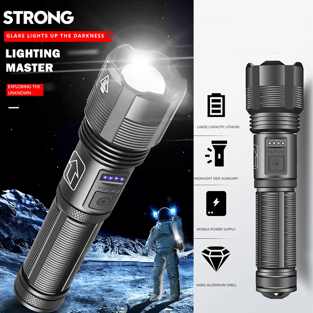 Многофункциональная Водонепроницаемая уличная охотничья кемпинговая светодиодная вспышка XHP50 с 5 режимами, телескопический перезаряжаемый фонарь с фокусировкой, 1000 люмен