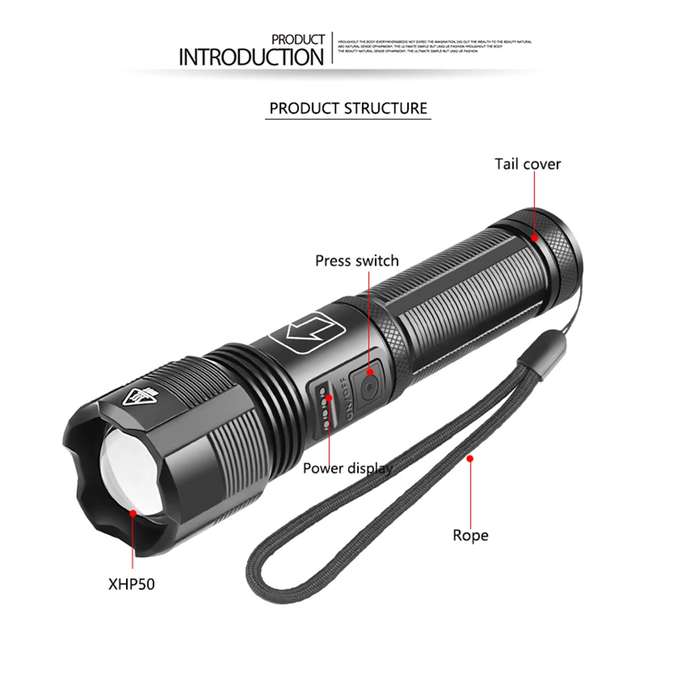 Многофункциональный водонепроницаемый 1000LM 5 режимов уличный охотничий кемпинг XHP50 светодиодный фонарик Телескопический перезаряжаемый фонарь