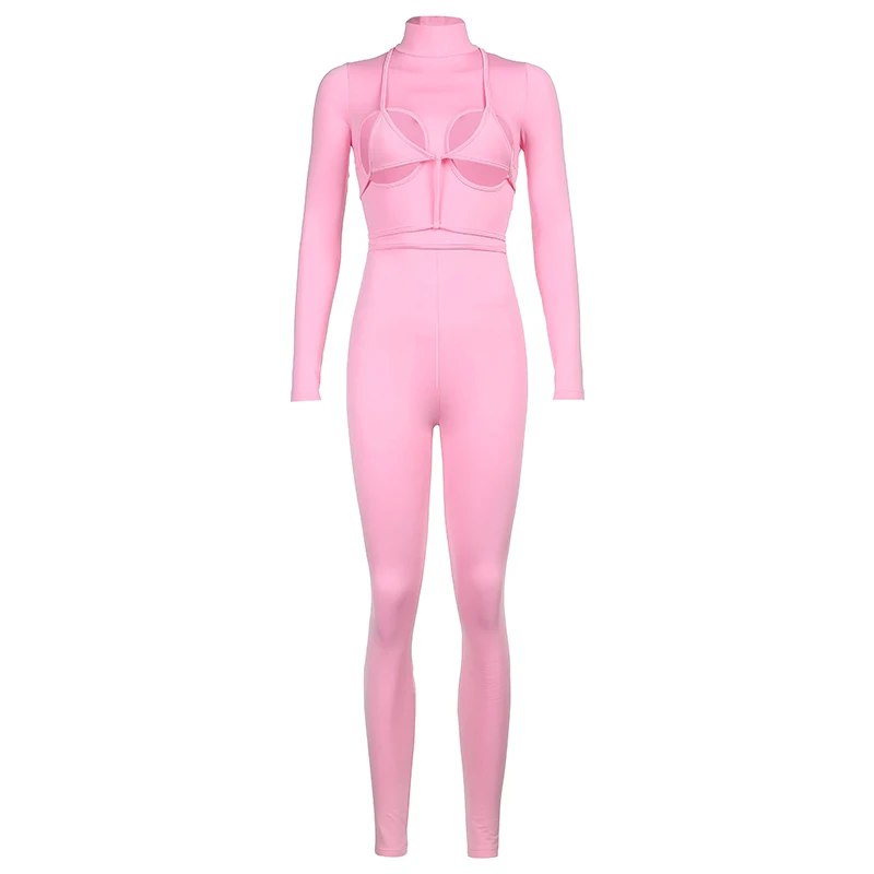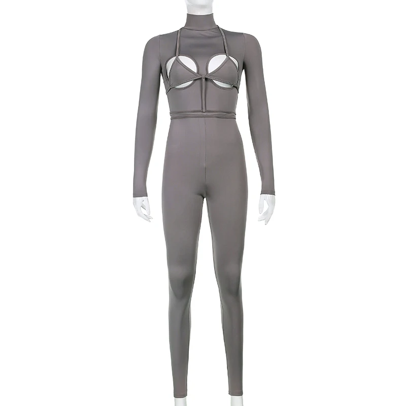 Комбинезон женский облегающий с длинным рукавом, Модный Белый спорт...