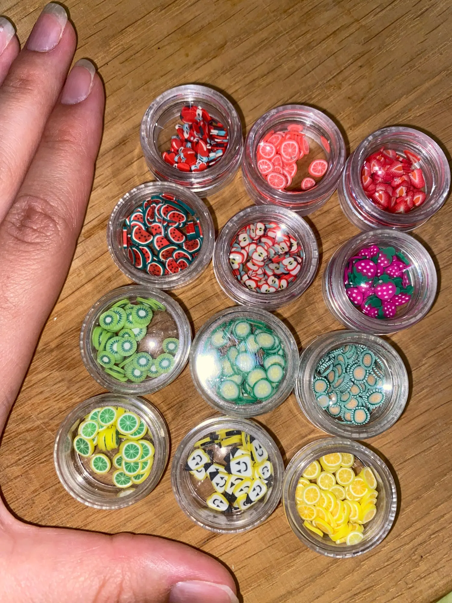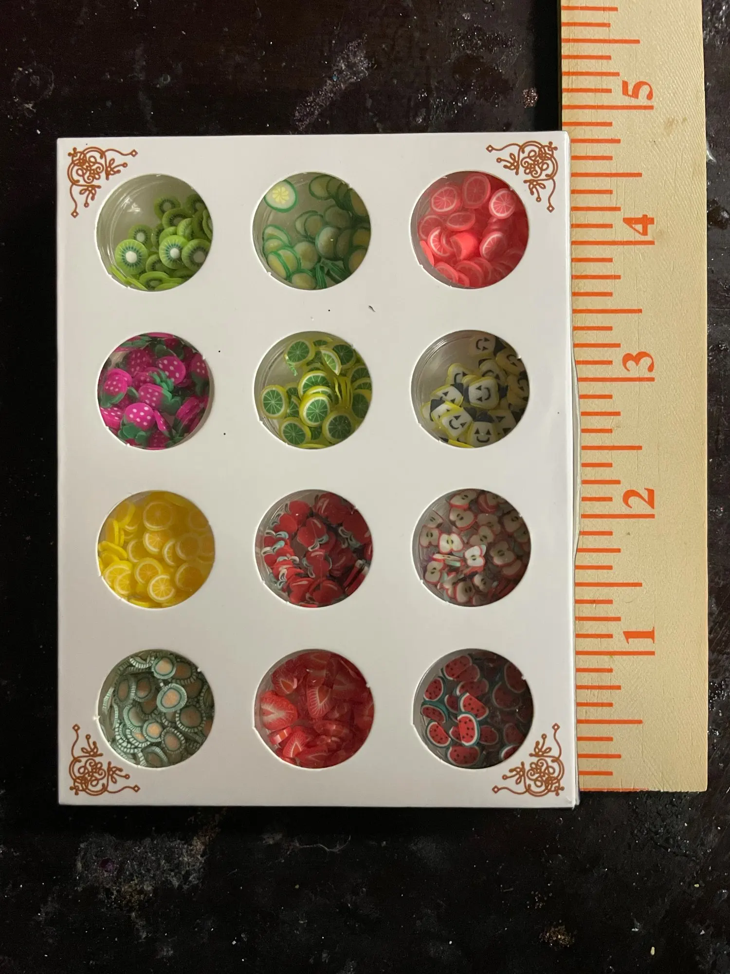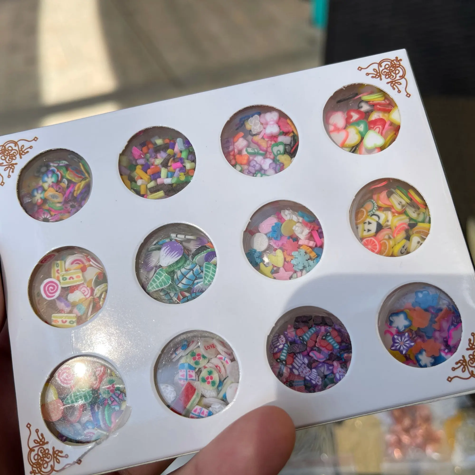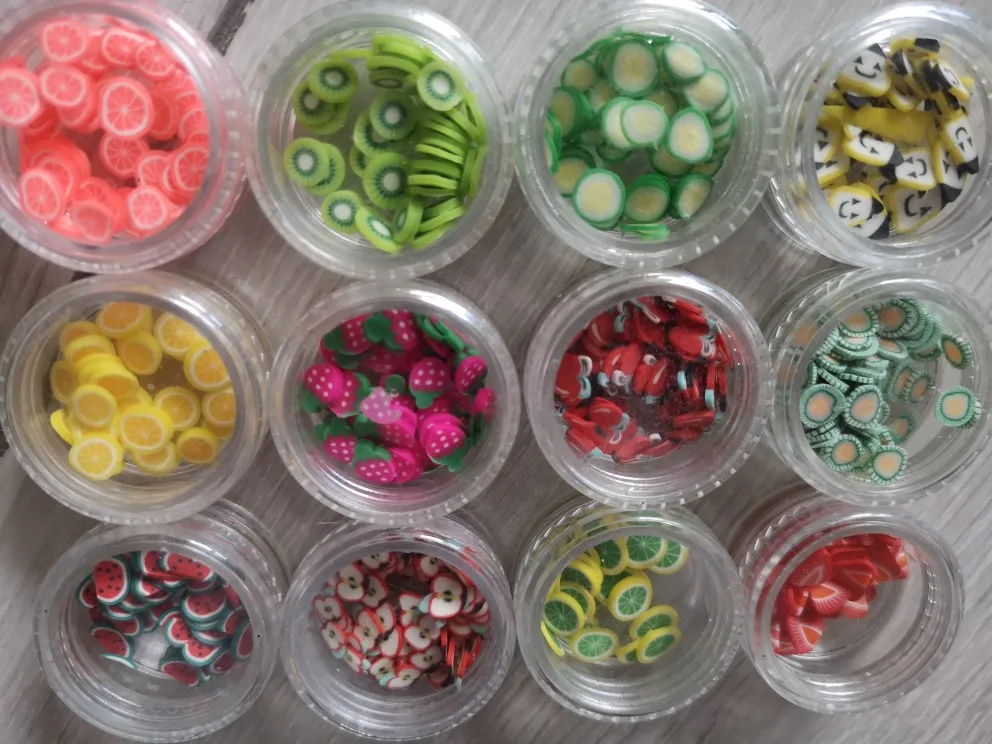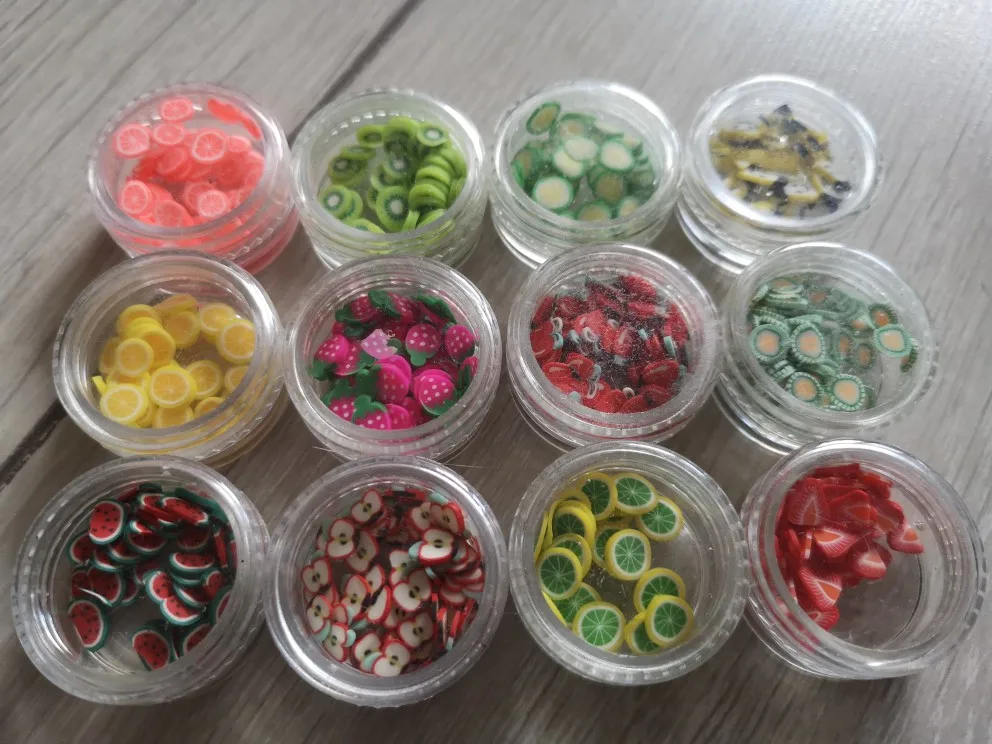 12 бутылочекупаковка, полимерный блеск, мягкая глина, мини-цветок, фрукты, эпоксидная смола, ювелирные изделия, кристаллы, ремесла, украшения из смолы