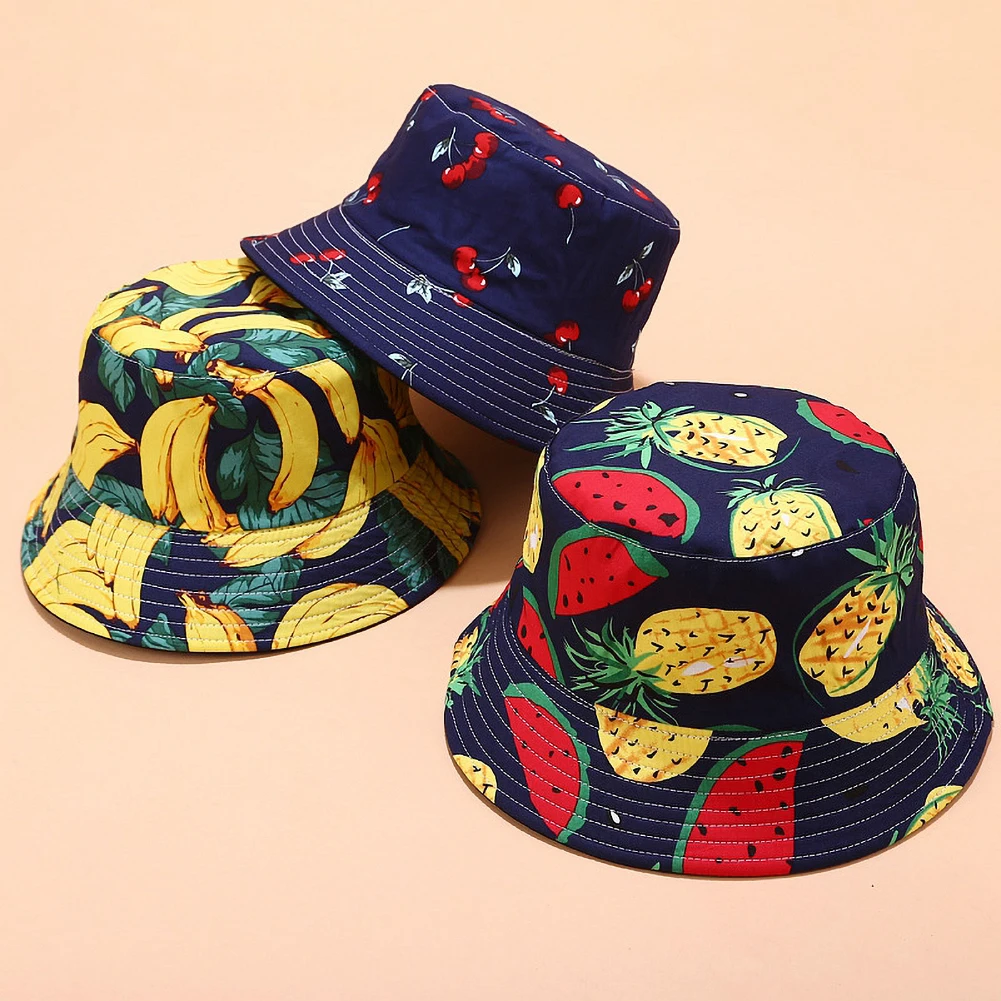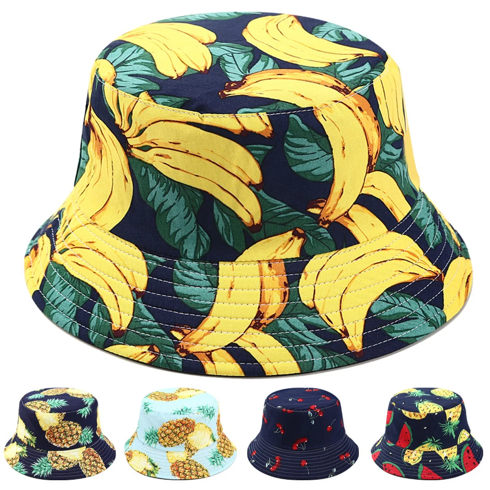 Взрослая летняя складная шляпа-ведро с фруктами, милая пляжная уф-защита с широкими полями, круглая солнцезащитная шляпа для рыбаков