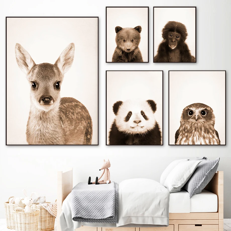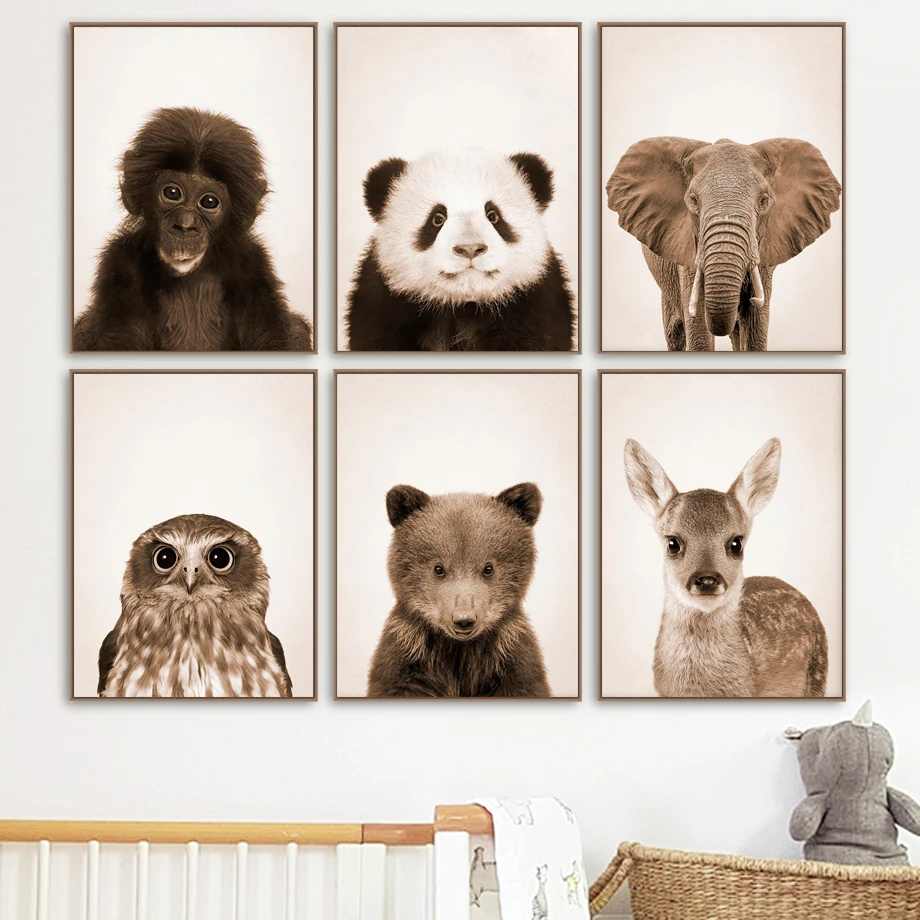 Слон жираф кролика, енота лиса детская стена искусство холст картин...
