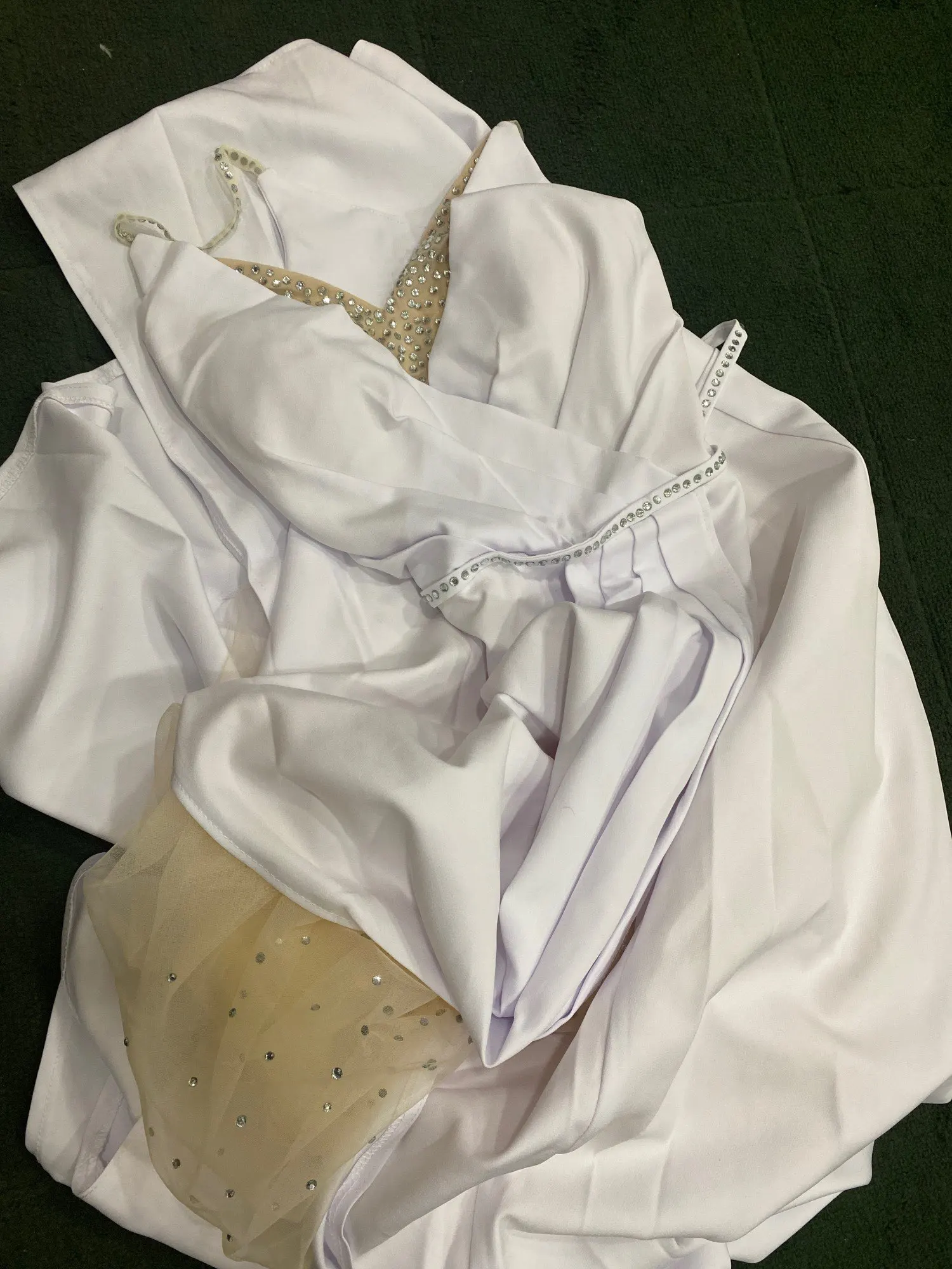 Место, где грудь и ноги разделены, светло-шампанского цвета с маленькими бриллиантами, очень красиво, ткань хорошего качества, мягкая и толстая. Вы можете связаться с покупателем, чтобы настроить свой собственный размер, и изготовление на заказ является бесплатным.