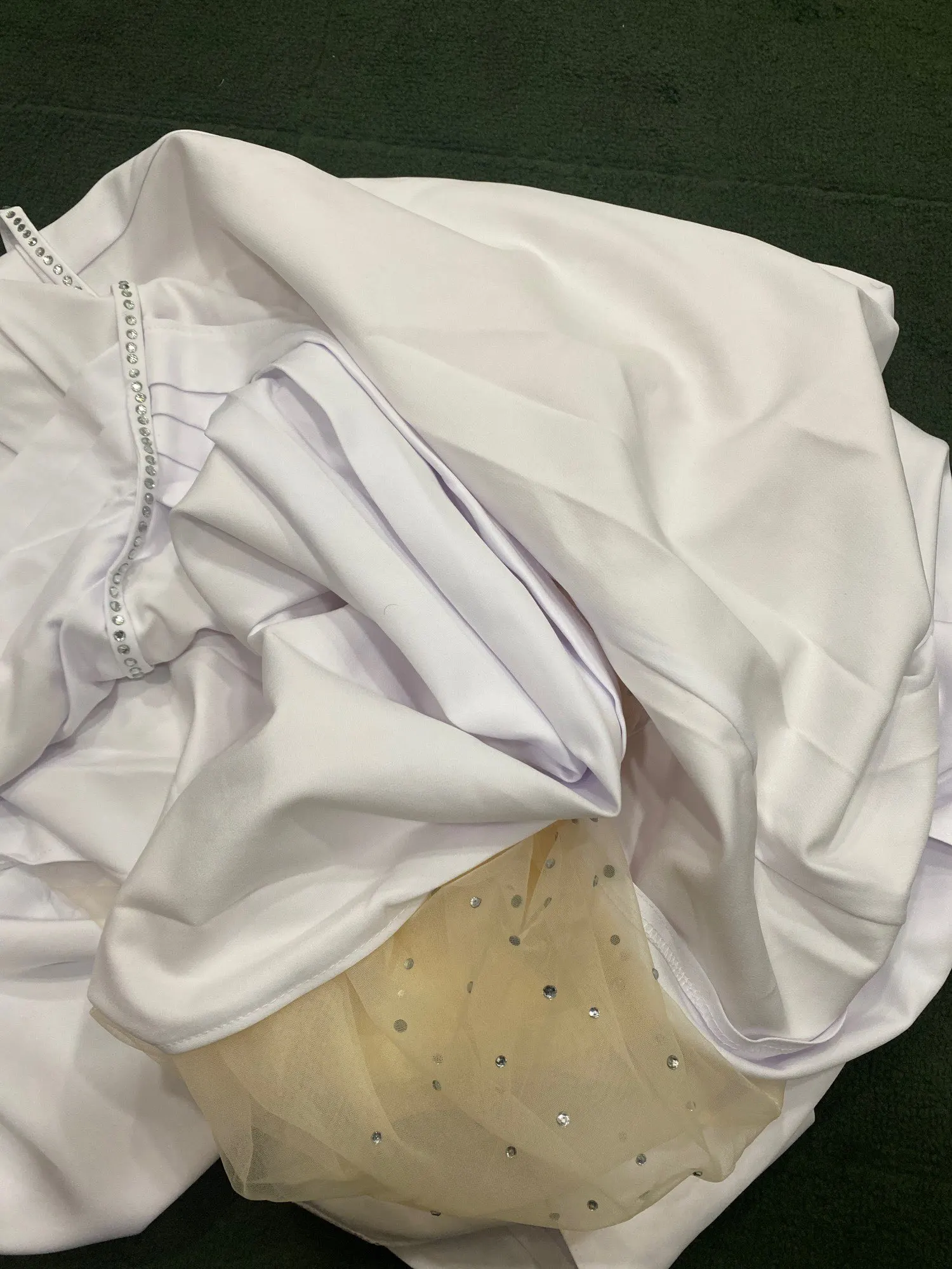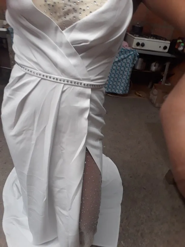 Я беспокоился, что заказал платье, которое никогда не было видно, особенно беременное и требующее одного платья для живота, но это платье отлично подходит для моей свадьбы. Стразы довольно большие, но они хорошо смотрятся на фотографиях.
