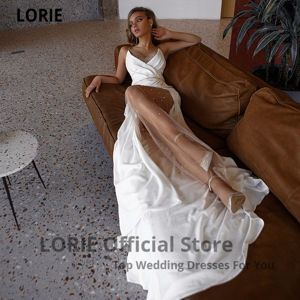 Белое свадебное платье-Русалка LORIE, мягкие атласные пляжные свадебные платья с V-образным вырезом, Роскошные вечерние платья принцессы на бретелях с бисером