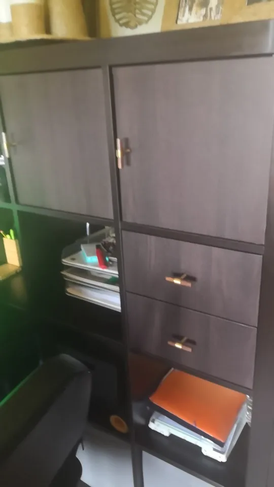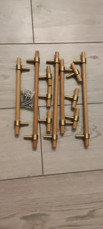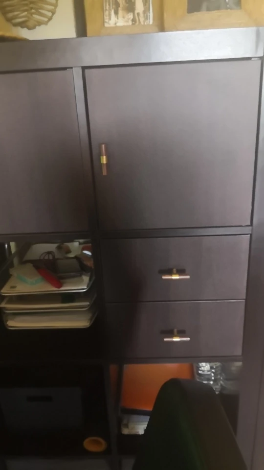 미묘한 색상차이는 있지만 가구에 달고 다니 신경쓰일 정도는 아이에요. 가구 문 두께가 있어 나사는 못 쓰고, 기존에 달려 있덤 나사 재활용했어요. 나사 길이에 대한 옵션이 있으면 좋겠네요. 잘못 했으면 못 달뻔했어요. 그리고 생각보다… 봉 지름이 작아요. 약간 왜소한 느낌