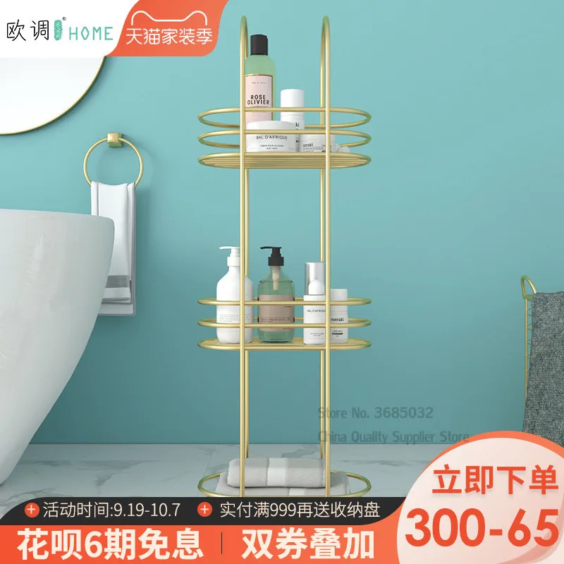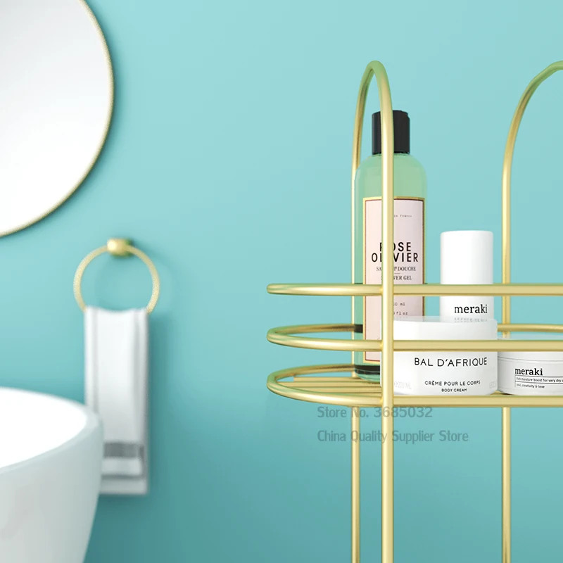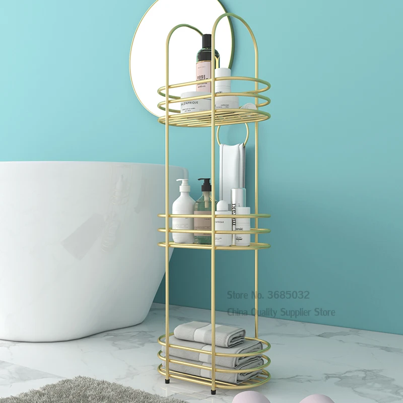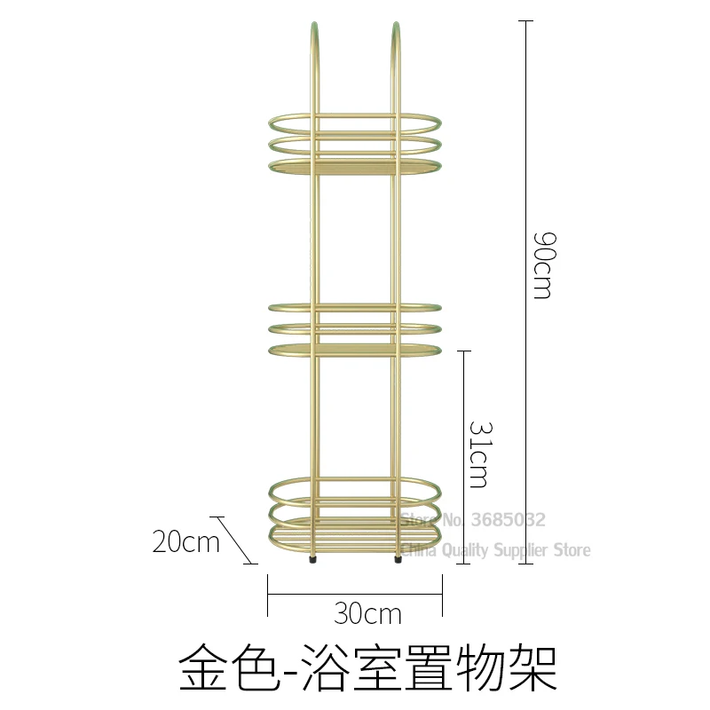 Скандинавская многоярусная напольная металлическая полка для ванной комнаты, невыцветающий золотистый стеллаж для хранения из кованого железа, водонепроницаемая полка для хранения, 30*20*90 см