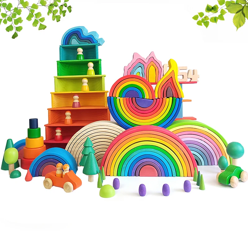 Большие деревянные радужные строительные блоки, креативный Штабелируемый высокий баланс, сделай сам, развивающая деревянная игрушка, подарки для детей, для мальчиков и девочек, Лидер продаж