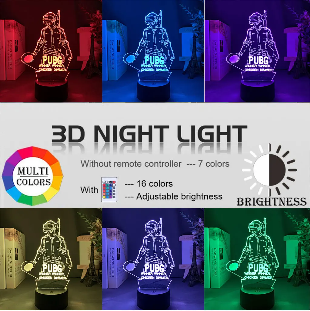 3D светодиодный ночсветильник PlayerUnknown's Battlegrounds, 16 цветов, меняющийся ночсветильник с дистанционным управлением, крутая лампа для приза за мероприятия