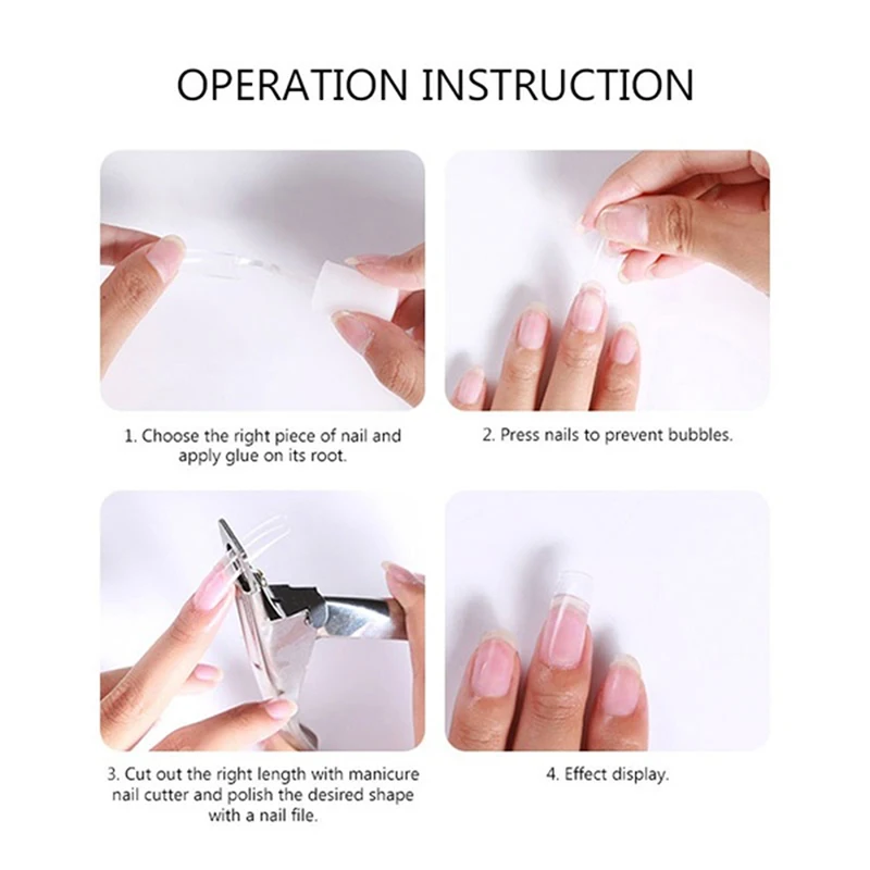 Как использовать:1. Слегка нанесите поверхность ногтя.2. Нанесите тонкое Базовое покрытие, закрепите его под УФ/светодиодной лампой.3. Выберите подходящий размер кончиков для ногтей.4. Нанесите полигель/УФ-гель на форму для ногтей, используйте карандаш для ногтей, чтобы сделать гель гладким.5. Приклейте его к реальному ногтю, убедитесь, что он полностью разрастается, высушите его под УФ/светодиодной лампой.6. Удалите накладные ногти, обрежьте форму ногтей.7. Нанесите верхнее покрытие на УФ/светодиодную лампу.8. Дизайн ногтей.