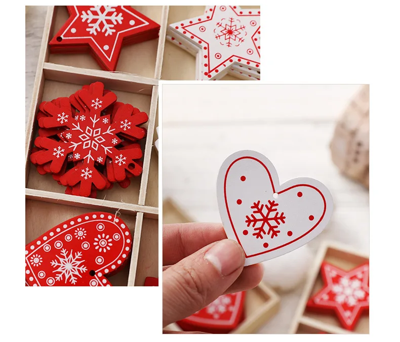 Деревянные подвесные украшения для новогодней елки, 10 шт.лот