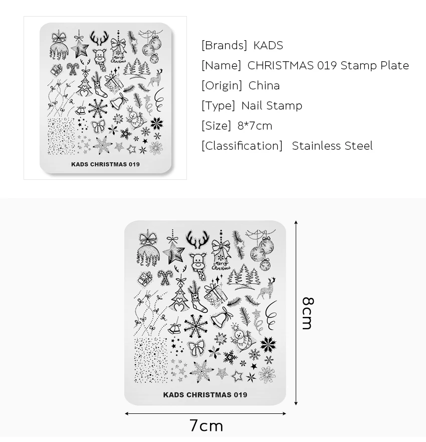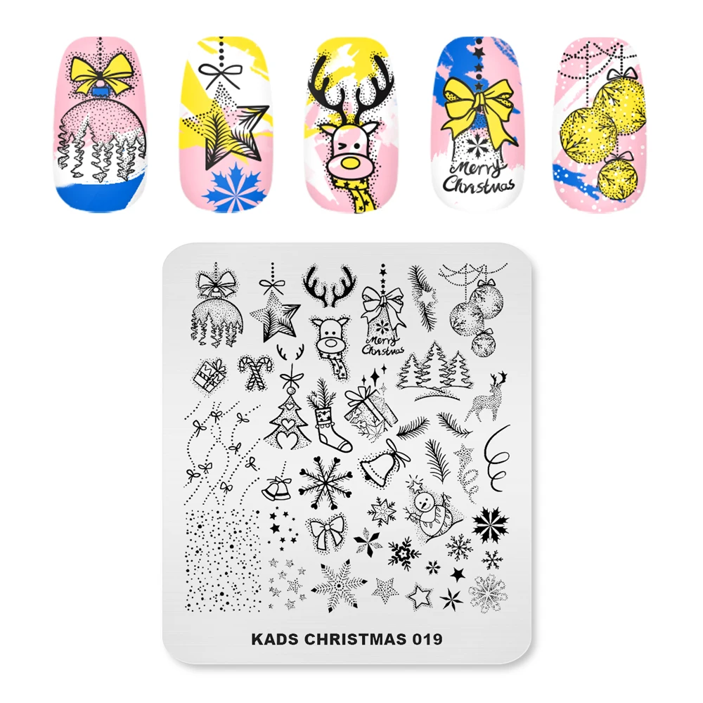 KADS набор штамповочных пластин для ногтей Рождество 019 колокольчики с фигуркой лося снежинки шаблон для дизайна ногтей зимнее изображение Трафарет Инструмент для штамповки