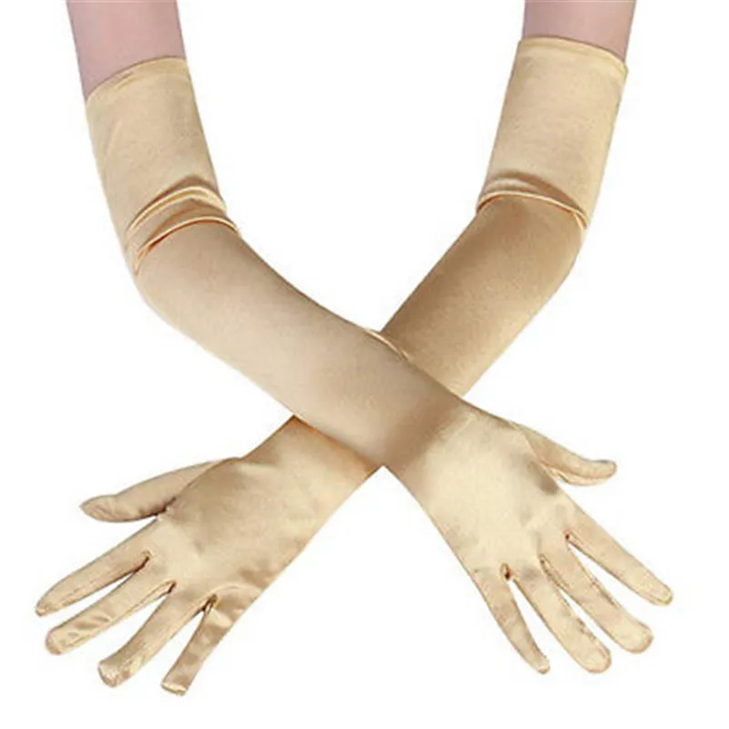 Перчатки женские атласные, Длинные однотонные, для оперы, бала, вечеринки, выпускного вечера