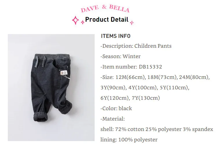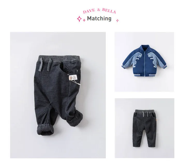 DB15332 dave bellaзимние штаны для маленьких мальчиков; Модные однотонные брюки с карманами для малышей; Детские брюки высокого качества