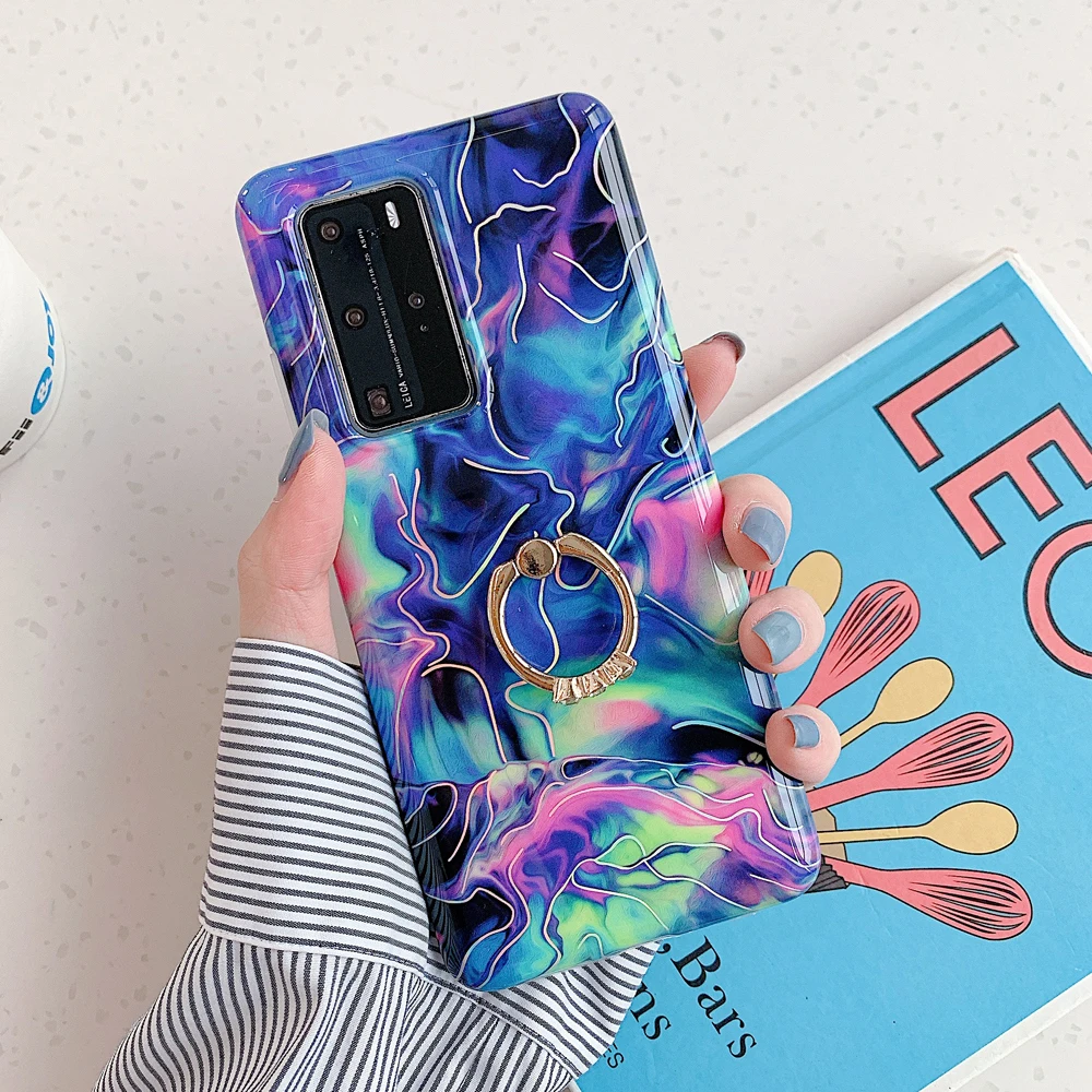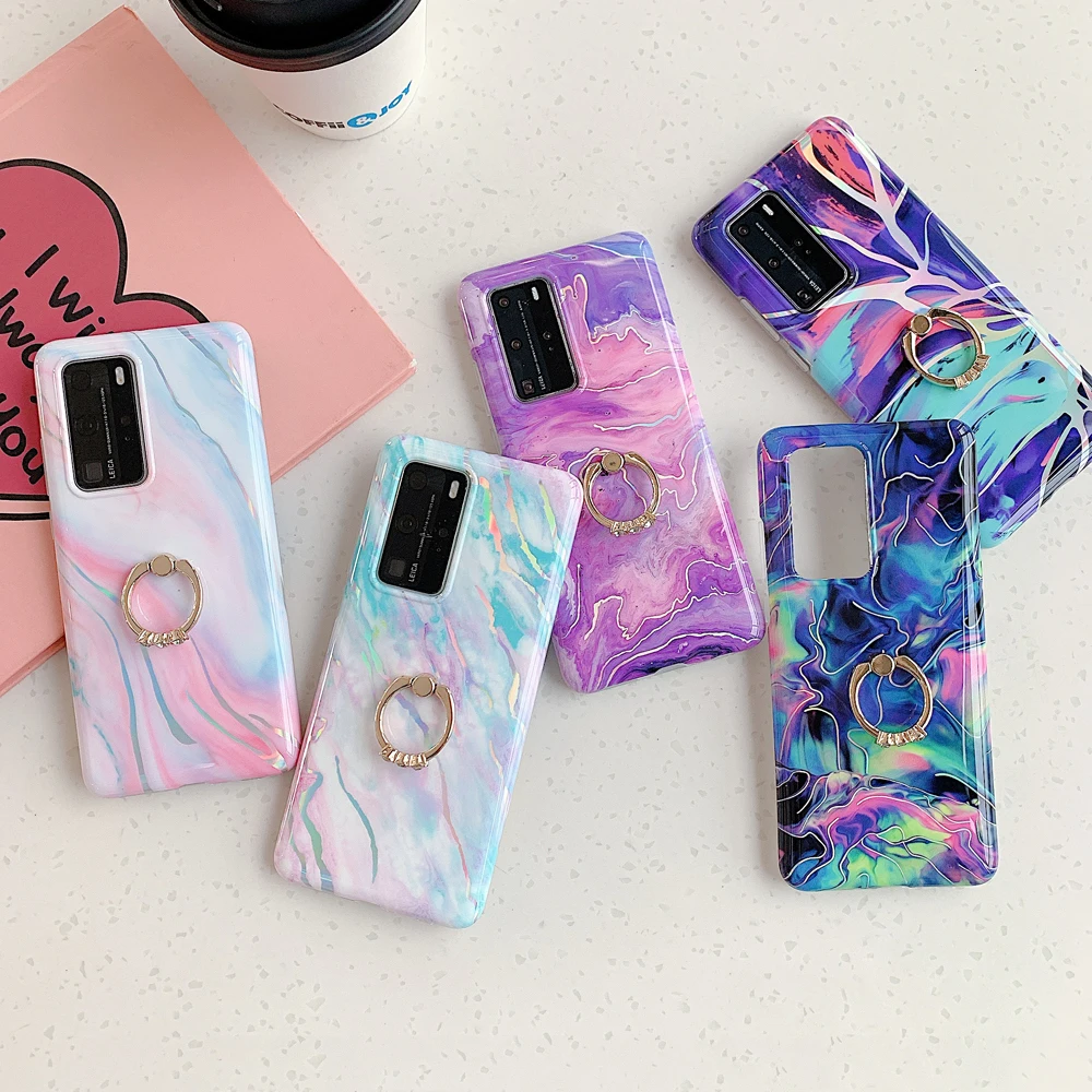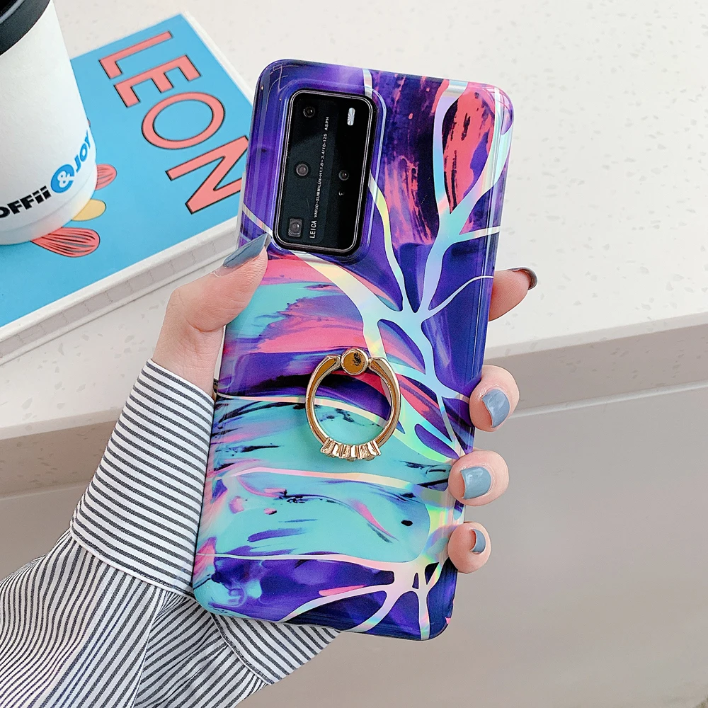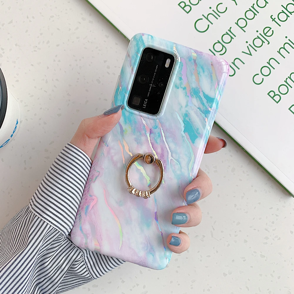 Чехол для телефона LOVECOM с лазерным градиентом и мраморным рисунком для Samsung A53, A33, A13, A52, A72, A32, A51, S22, S21, S10 Plus, S20, FE Note 20, мягкий чехол с кольцом