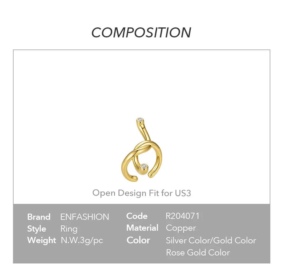 Женское открытое Изогнутое Кольцо с узлом ENFASHION, кольцо золотого цвета с нестандартным кристаллом, модные ювелирные украшения, рождественские кольца, R204071, 2020