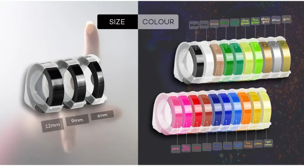 4 рулона для Dymo 3D 9 мм * 3 м ПВХ тиснение этикетка совместимый с Dymo 1610 12965 1880 1540 ручной принтер для Motex E101 E202 E303