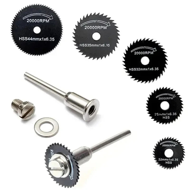 Описание:6 шт. металлический HSS круговой пилы Набор отрезных дисков для вращающегося инструментаСпецификация:
