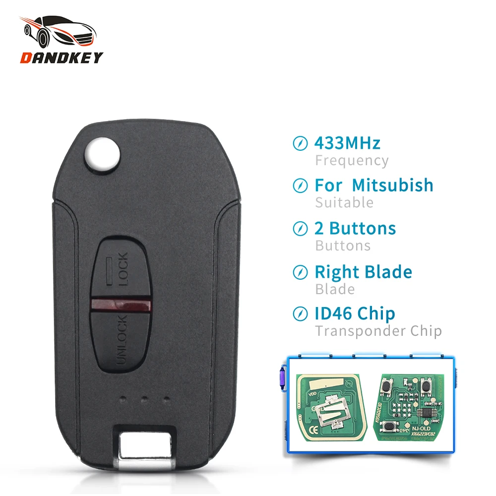 Пульт дистанционного управления Dandkey измененный для Mitsubishi ASX GRANDIS Outlander, LANCER-EX, Triton, Shogun, 433 МГц, чип ID46, 2 кнопки