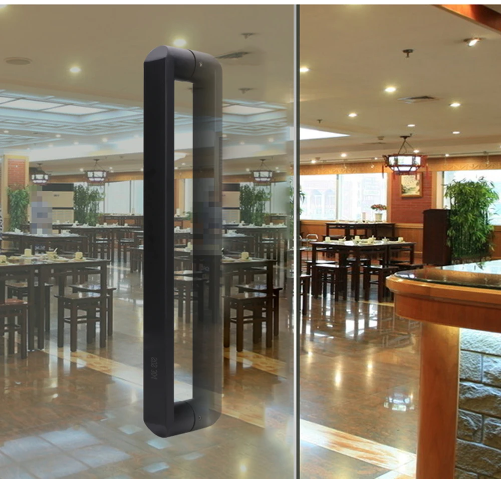 Стеклянная Дверная ручка, черная ручка из нержавеющей стали 304 для душевой комнаты, ручка для магазина, матовая черная ручка
