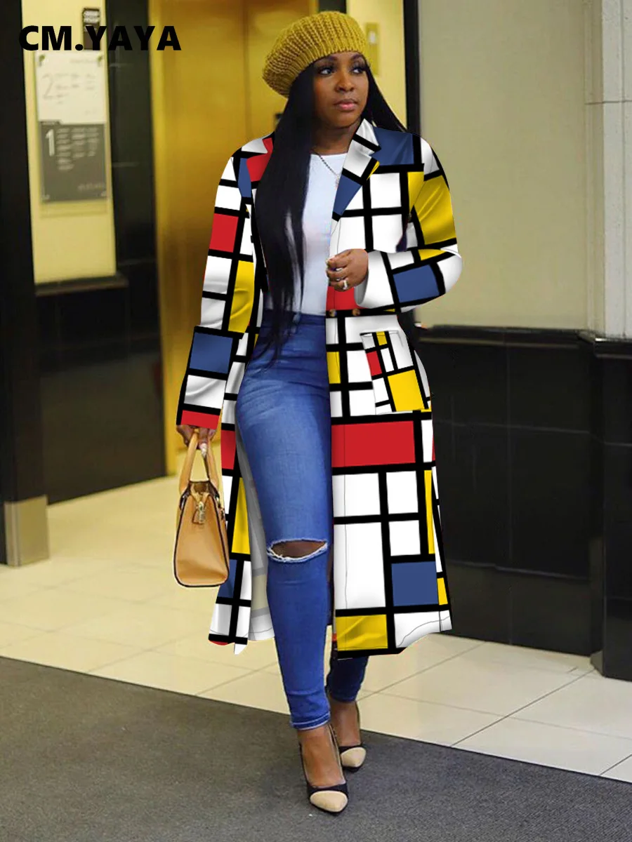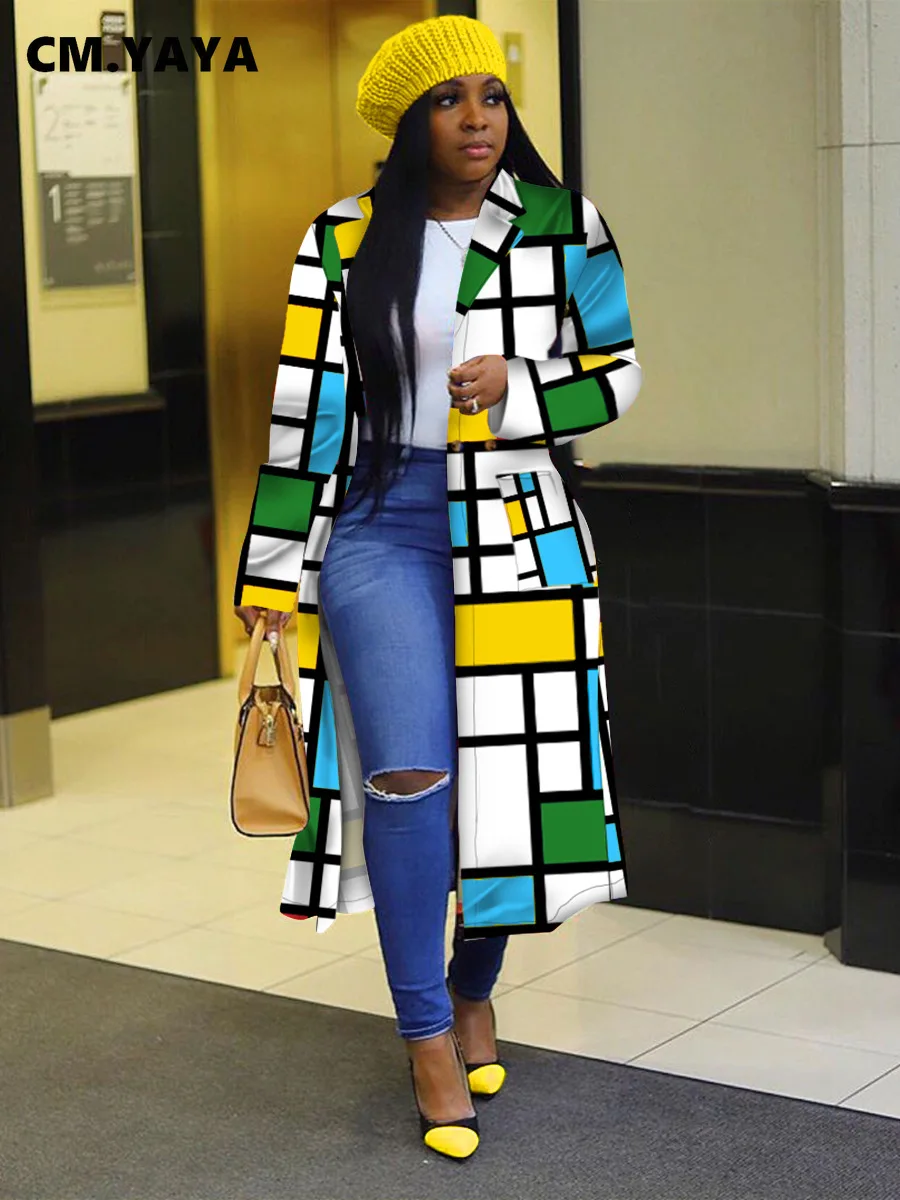 Тренч женский длинный в клетку, с длинным рукавом, Осень-зима 2020