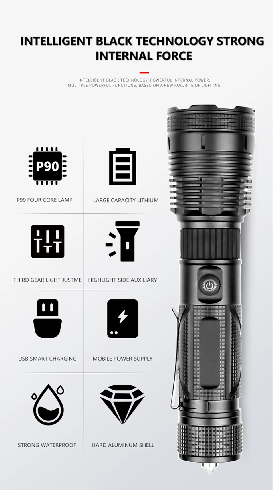 Xhp90.2 4-ядерный самый яркий мощный перезаряжаемый тактический све...