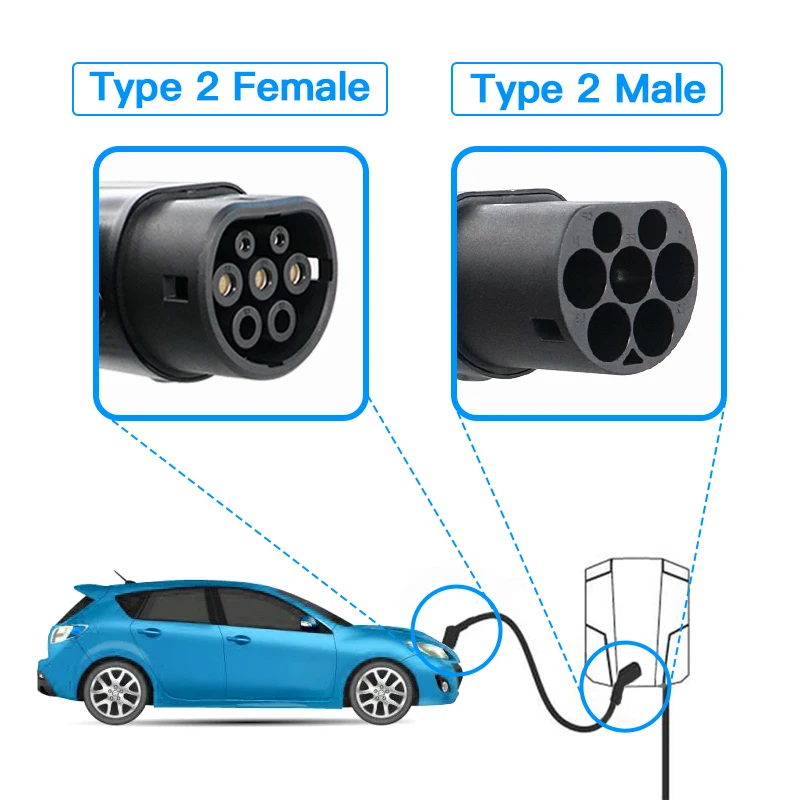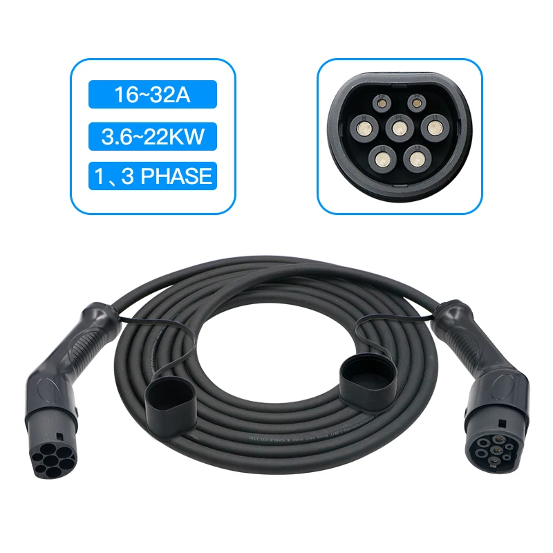 Зарядный кабель для электромобиля, 32 А, 22 кВт, 3-фазный Тип 2 в Тип 2, автомобильная зарядная станция EVSE для электромобиля типа 2 штекер Мама-папа IEC 62196