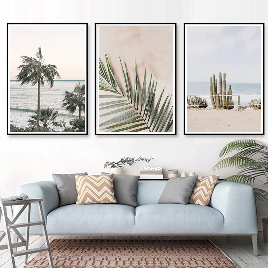 Постер с изображением пальмы, кактуса, песка, природы