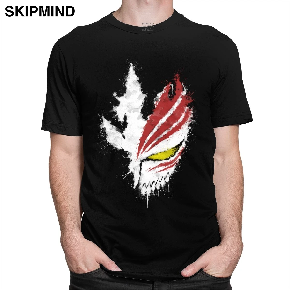 Модная отбеливающая футболка, Мужская Уличная одежда с коротким рукавом, футболка Ichigo Kurosaki, футболка с ажурной маской, футболка из чистого хлопка, одежда в подарок