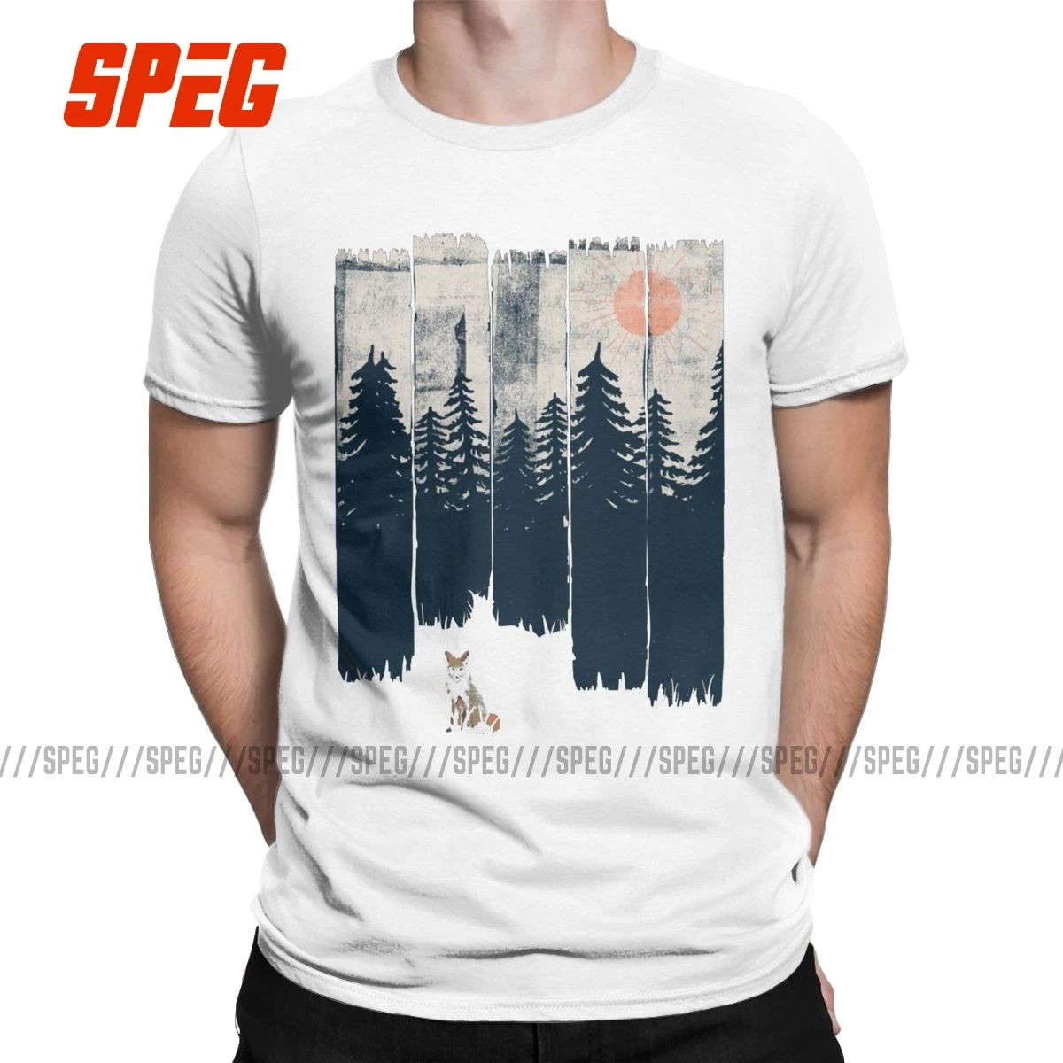 Футболка мужская из 100% хлопка с изображением лисы в дикой природе, с изображением горы, юмора, футболка с коротким рукавом и круглым воротником, одежда с принтом