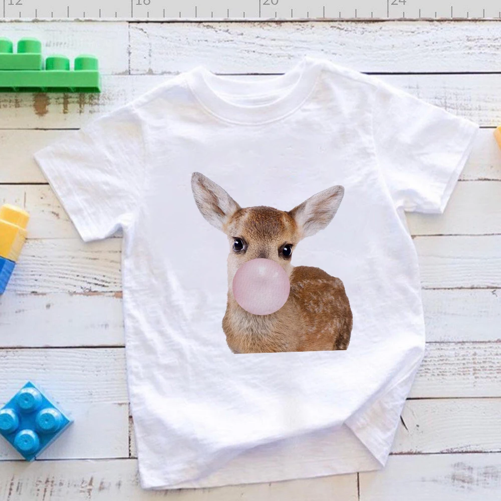 Детская футболка с мультяшным принтом оленя для девочек и мальчиков...