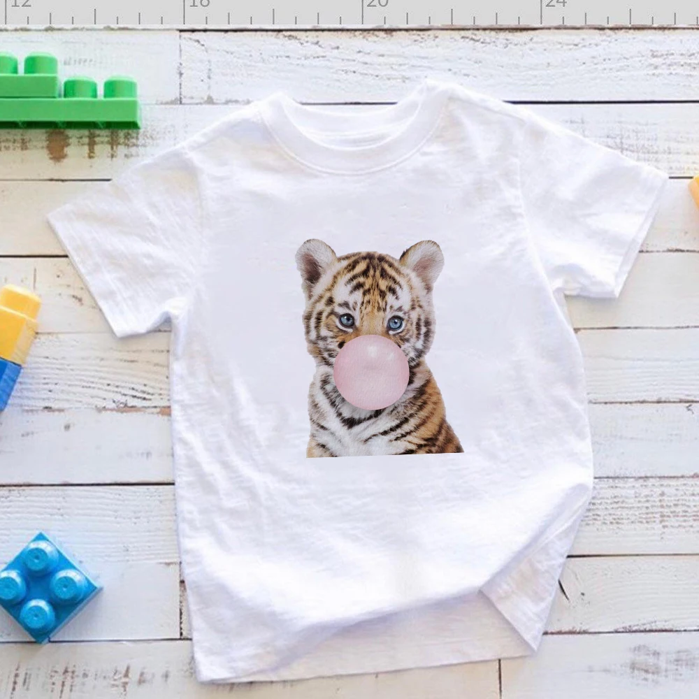Хит продаж, футболка в хипстерском стиле Одежда для маленьких мальчиков Оригинальная футболка с изображением маленького тигра и пузырьков Футболки