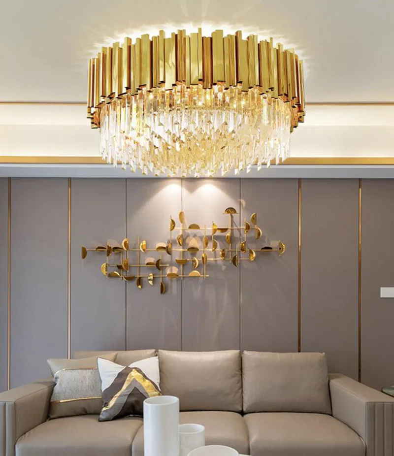Роскошный хрустальный потолок для гостиной современный золотой круглый светильник Led освещение для домашнего интерьера светильники