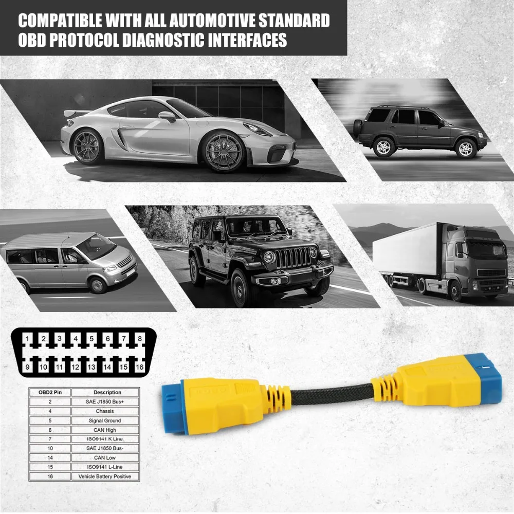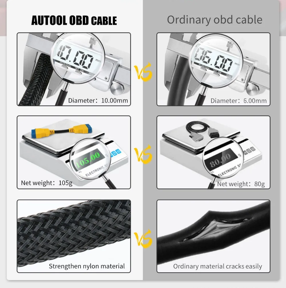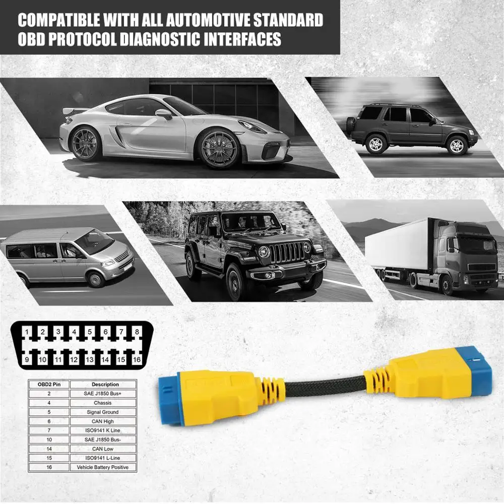 Автомобильный усиленный нейлоновый удлинитель AUTOOL OBD2, 20 см, кабель штекер-гнездо для Launch EasydiagTHINKDIAGTHINKDRIVERELM327