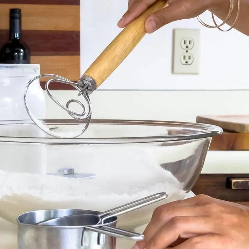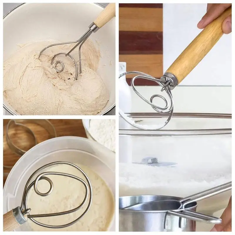 Венчик для теста из нержавеющей стали, венчик для теста для хлеба сделай сам, венчик для теста, гаджеты, инструменты, кухонные аксессуары, ручка для выпечки из древесины дуба