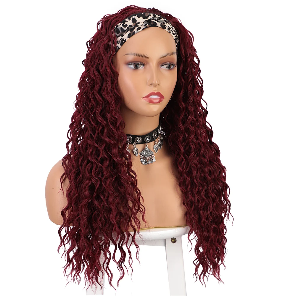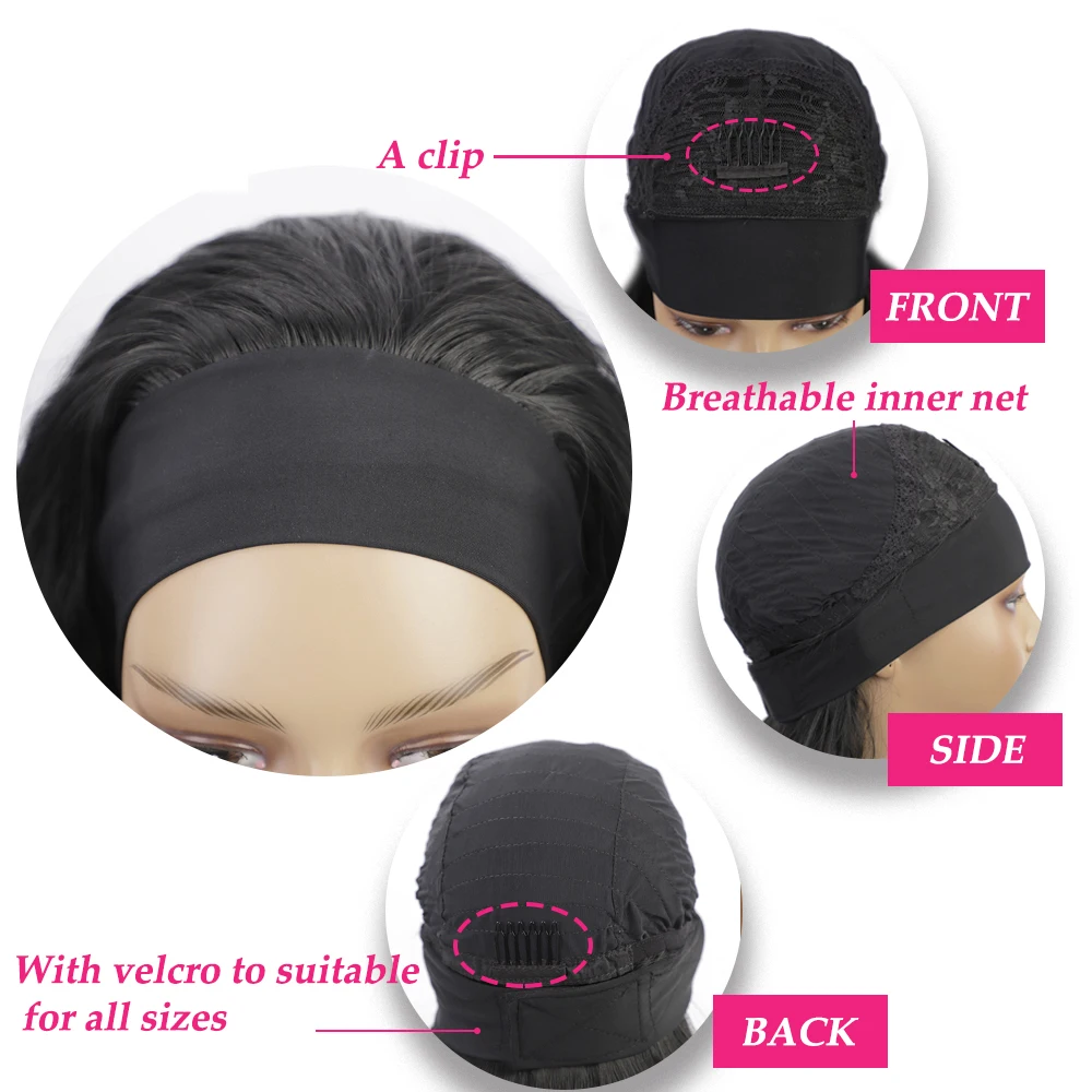 Парик с головной повязкой для черный Для женщин водный волнистый па...