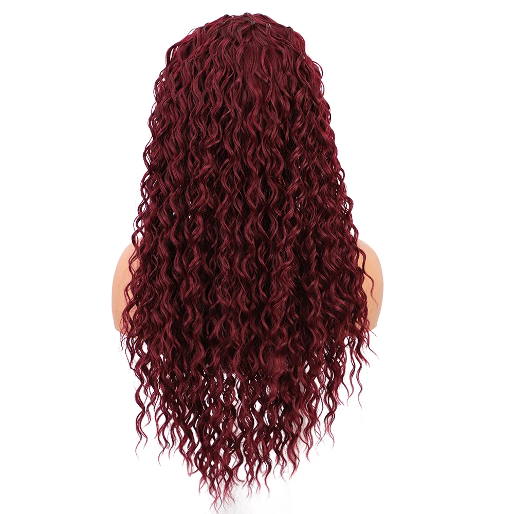 Великолепный кудрявый синтетический парик с печатью, красный парик, натуральные волнистые волосы, термостойкие волоконные синтетические парики для чернокожих женщин