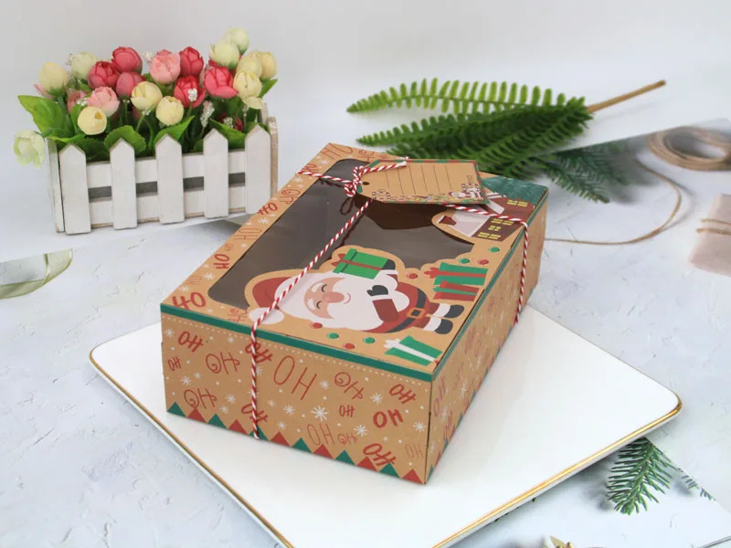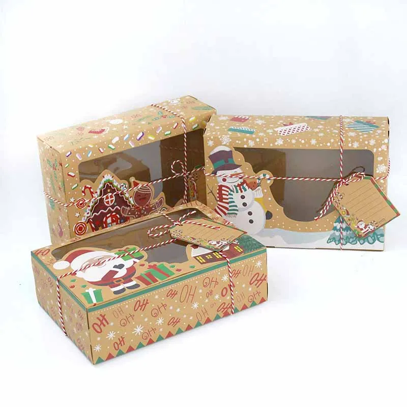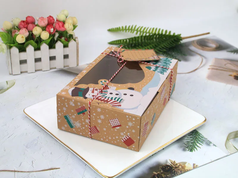 Коробка из крафт-бумаги для рождественского печенья, 2-3 шт.компл., большого размера, с пластиковым окошком из ПВХ, имбирных пряников, шоколада, подарочная коробка