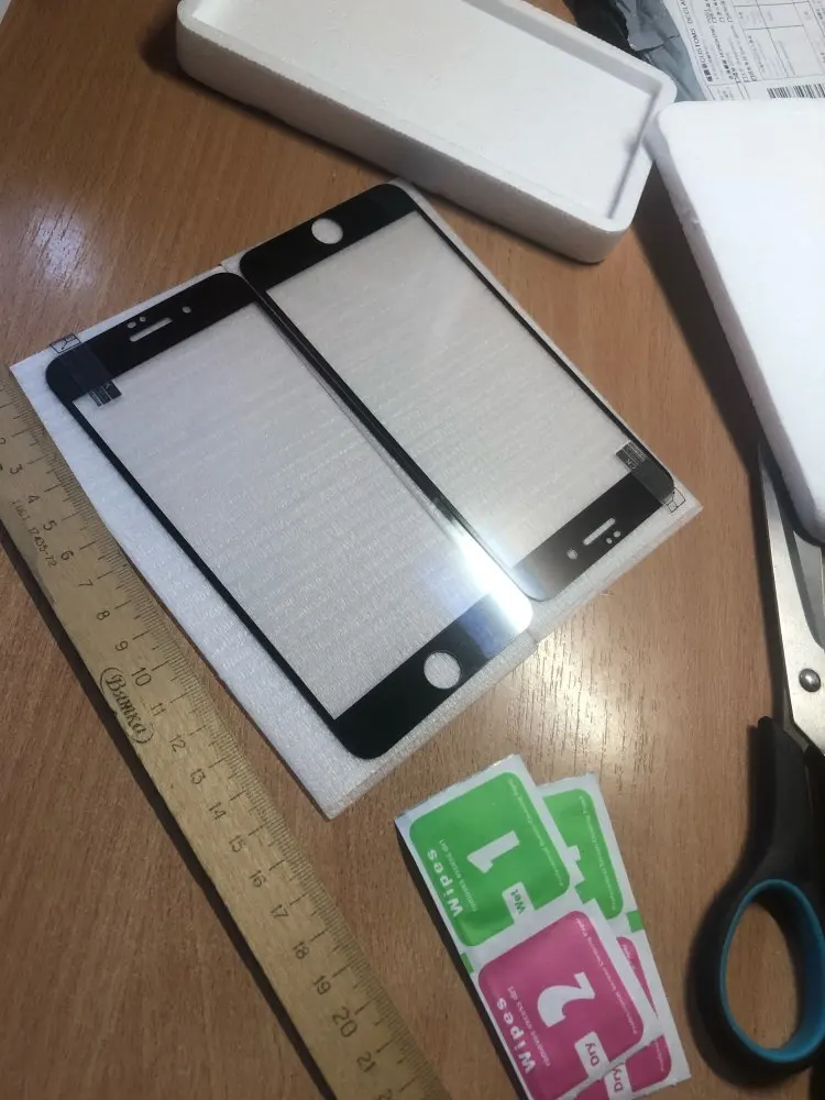 2.70 доллара за три стекла? это реально! наклеил, все нормально! были сомнения, но все подошло. как по мне, так на 7ку их нужно было сделать немного меньше, из-за гладкого края на смартфоне. рекомендую продавца. теперь как новееький