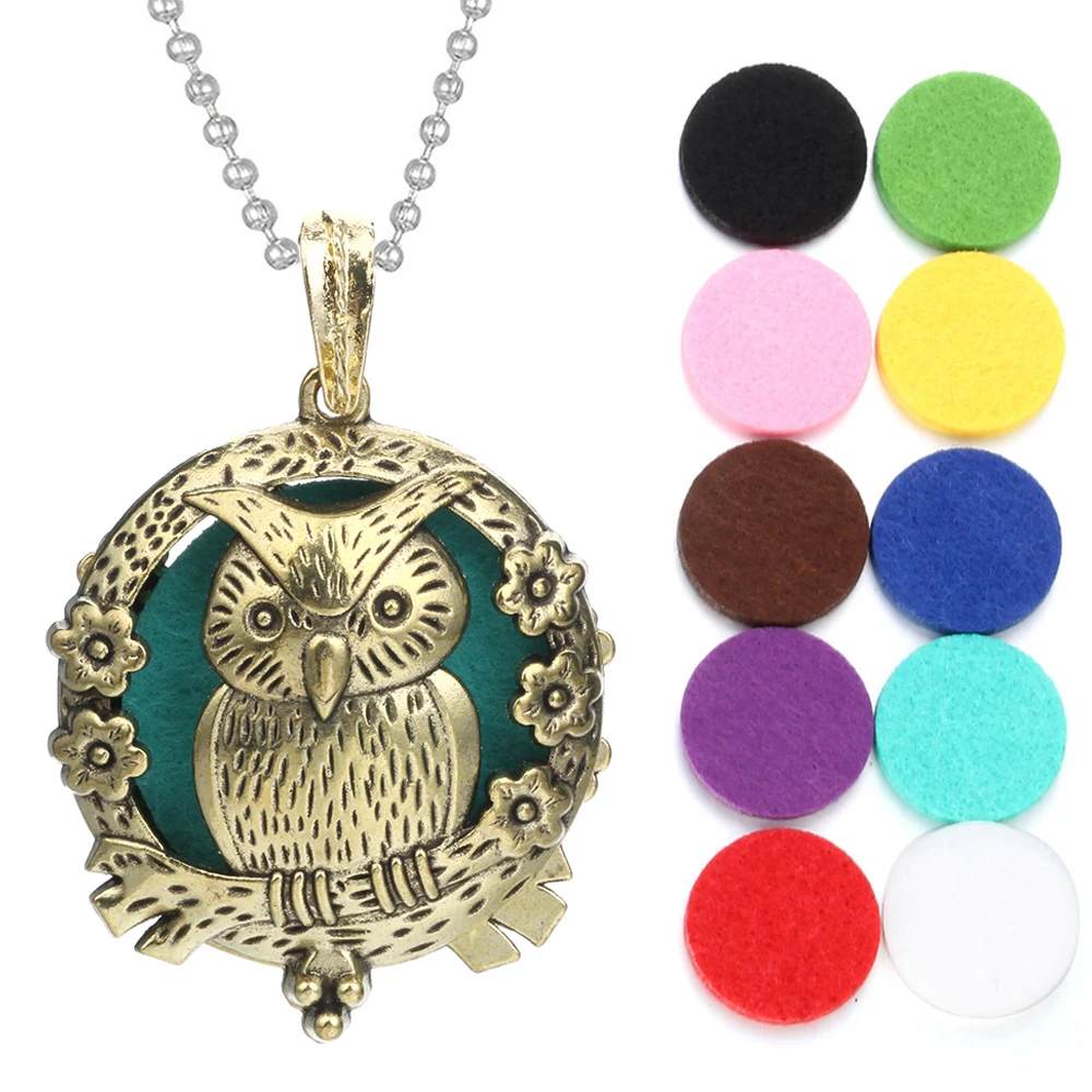 Аромадиффузор ожерелье с открытым деревом Сова Красочные Медальоны ...
